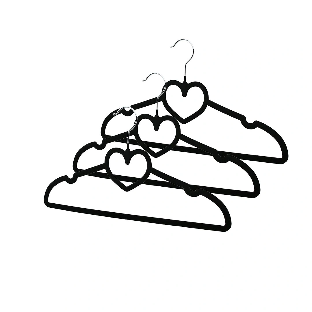3PCS SİYAH KADİFE KAPLI - KALPLİ PLASTİK ASKI METAL UÇLU