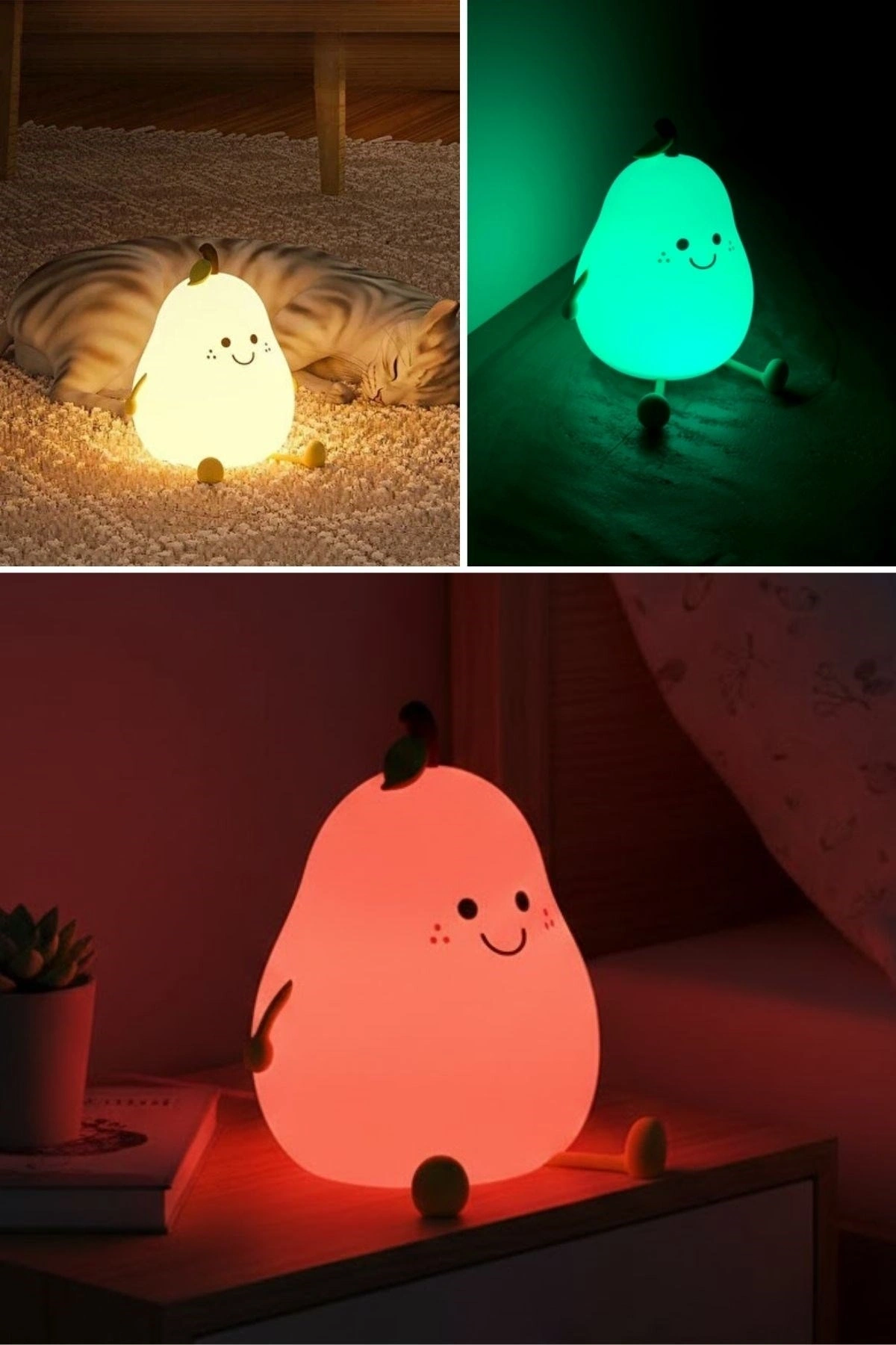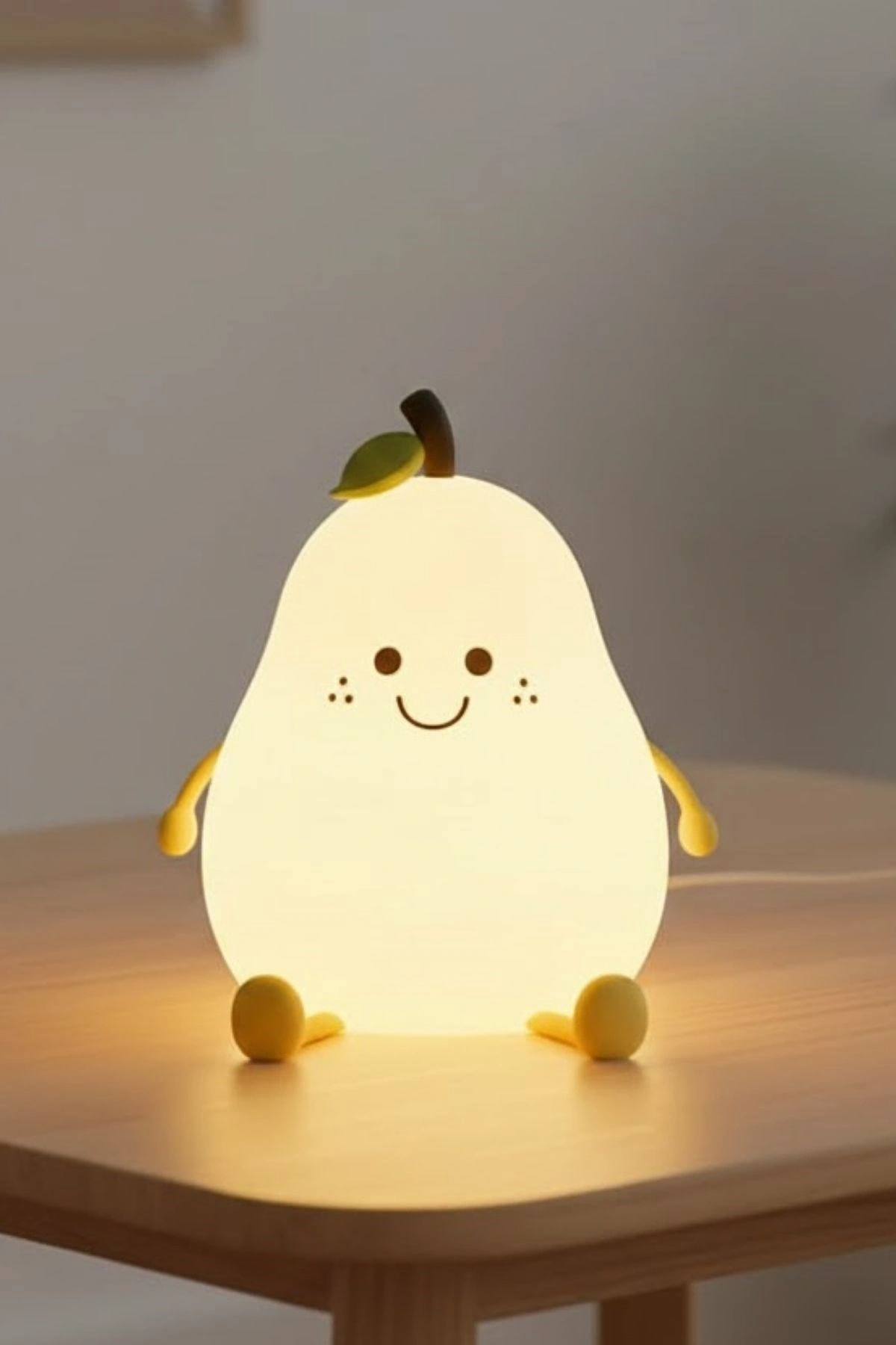 5 Farklı Renk Modlu Armut Figürlü Pofuduk LED Gece Lambası–Yumuşak Dokulu Çocuk Odası ve Dekoratif Şarjlı Ortam Işığı