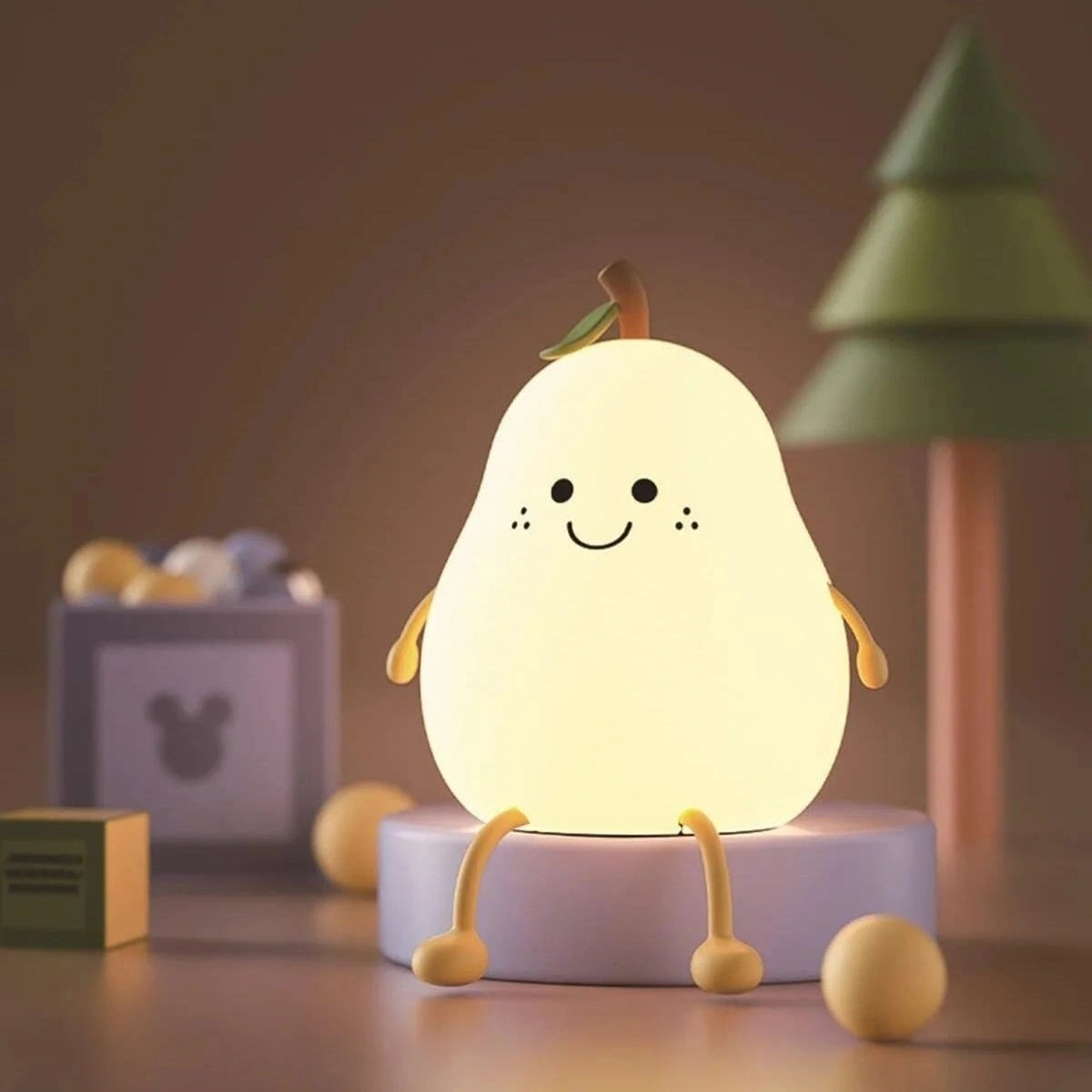 Armut Figürlü Pofuduk LED Gece Lambası, sevimli armut tasarımı ve yumuşak dokulu gövdesiyle yaşam alanlarınıza sıcak ve huzurlu bir atmosfer kazandırır. Göz yormayan LED ışığı sayesinde çocuk odaları, yatak odaları, komodinler ve masaüstleri için ideal bir gece aydınlatması sunar.