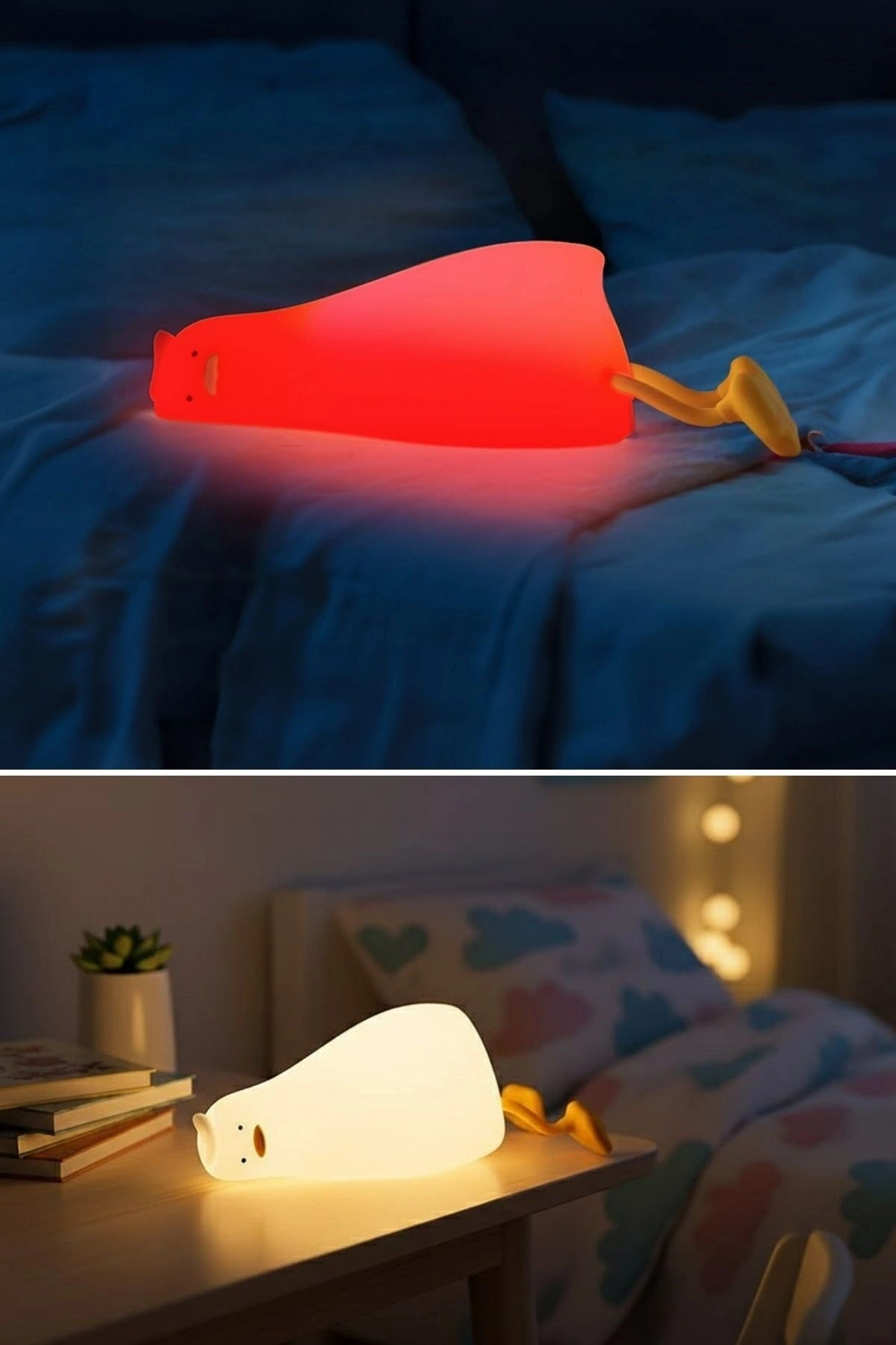 5 Farklı Renk Modlu Tembel Ördek Figürlü Pofuduk LED Gece Lambası, çocuklar için sevimli bir uyku arkadaşı, yetişkinler için ise dekoratif ve fonksiyonel bir ortam ışığıdır. Doğum günü, yeni doğan ve özel günler için hem şık hem de kullanışlı bir hediye alternatifi sunar. Sevimli tasarımı ve yumuşak ışığıyla yaşam alanlarınıza keyifli bir dokunuş katar.