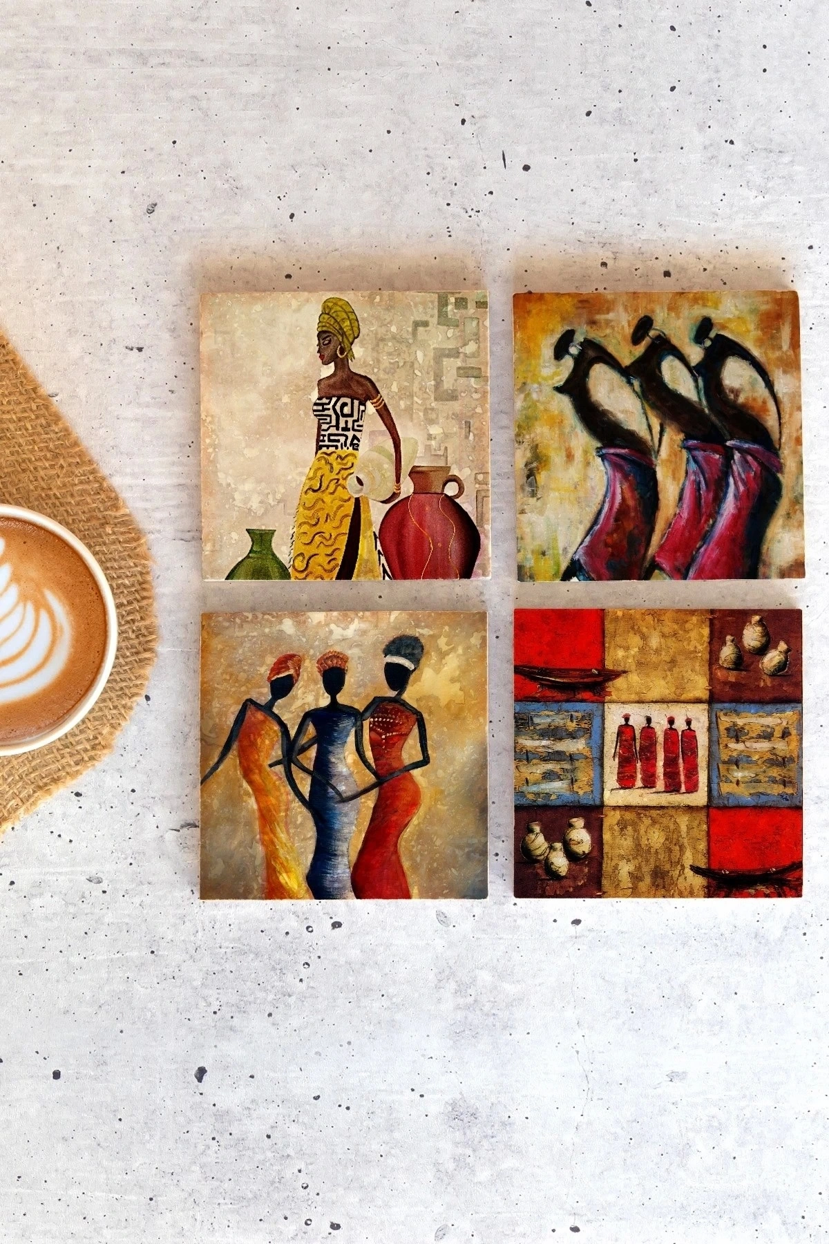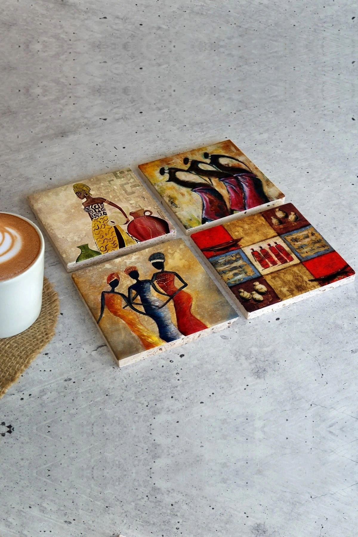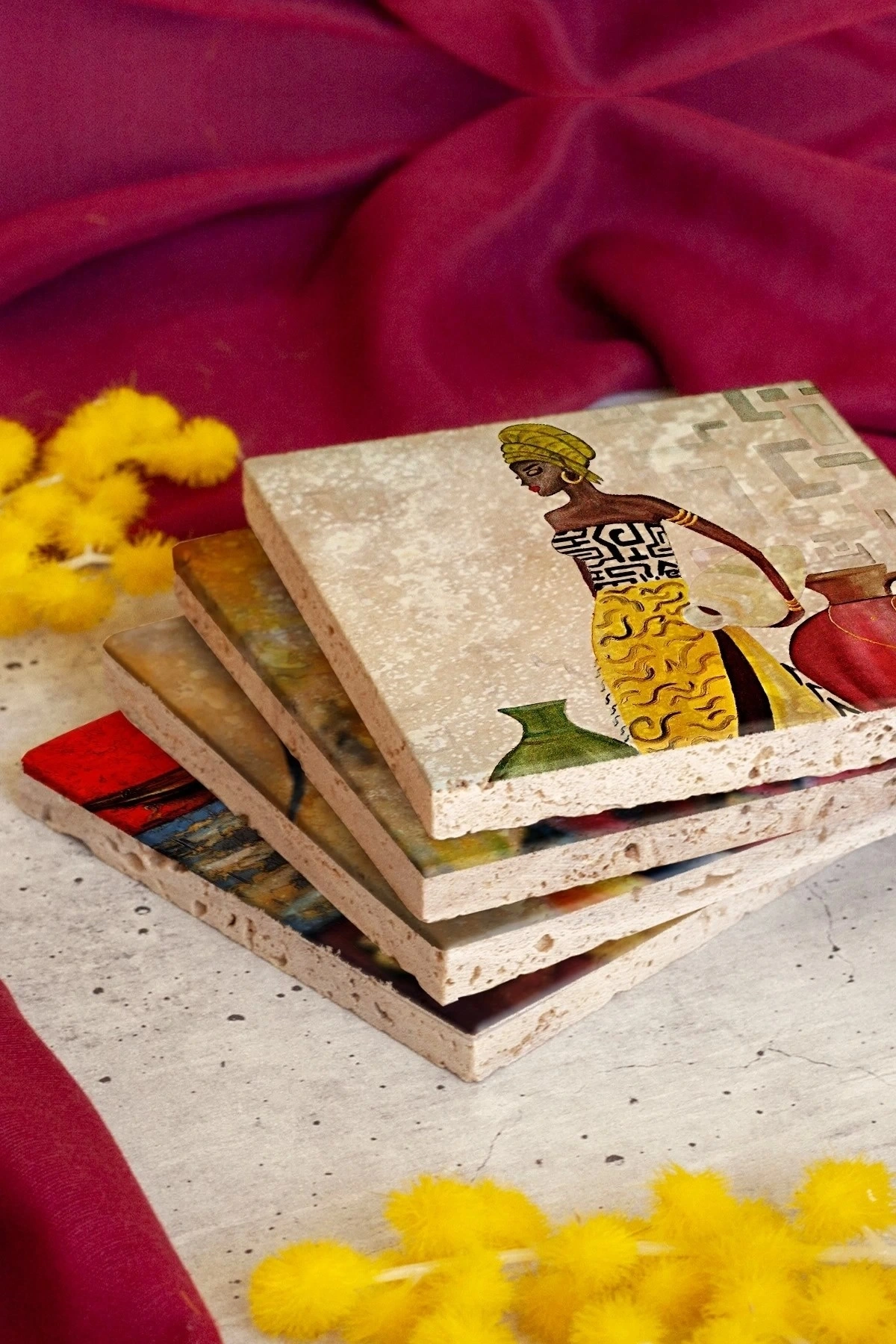 Afrikalı Kadın 4'lü Taş Bardak Altlığı
