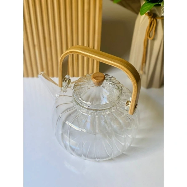 Ahşap Saplı Cam Çizgili Demlik