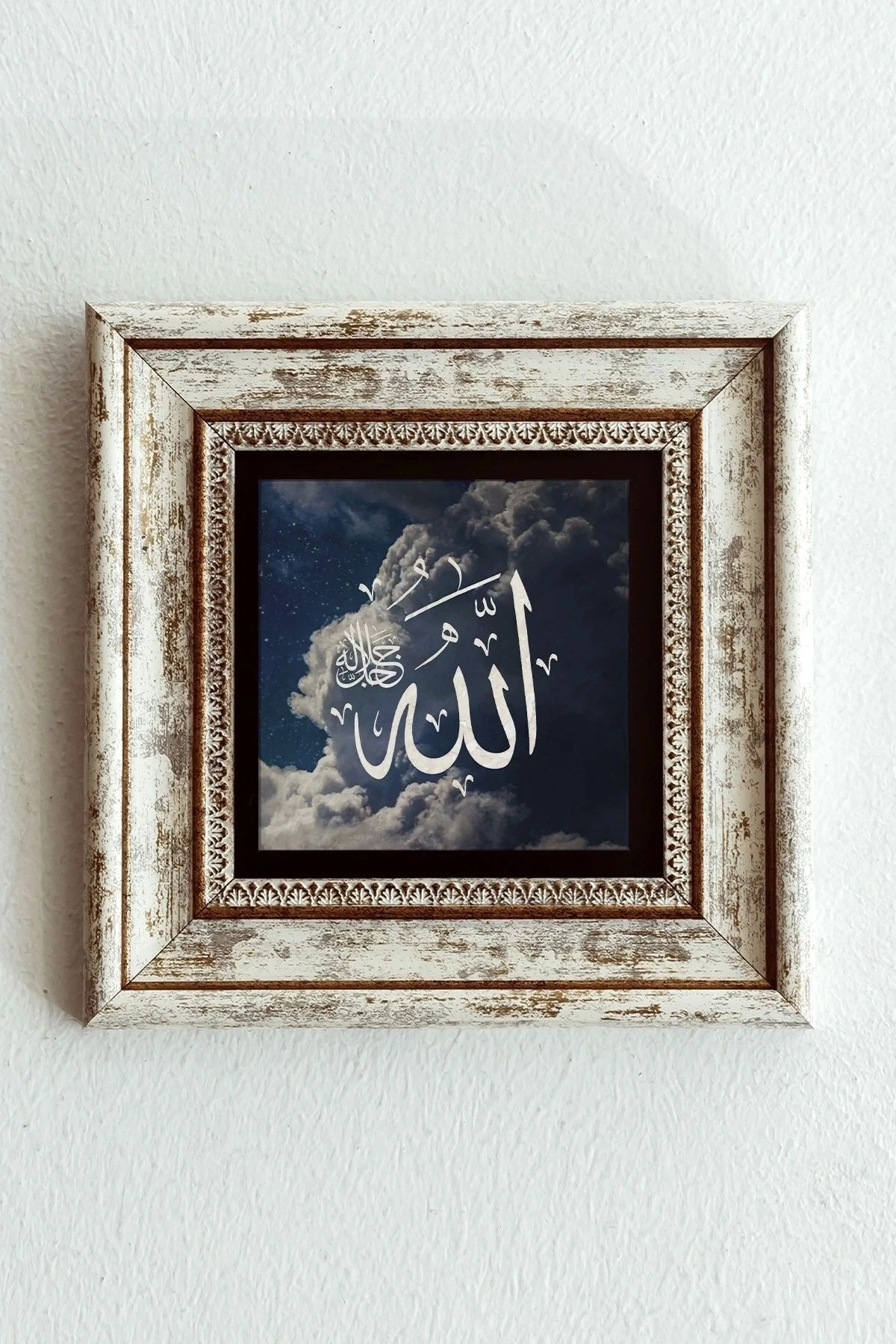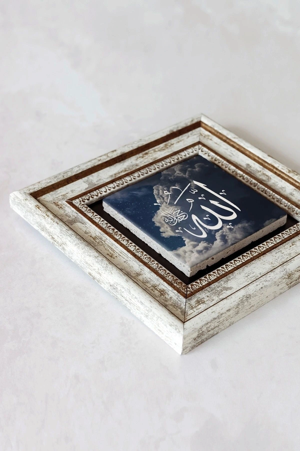 Allah Yazılı Çerçeveli Taş Tablo , Çerçeveli Taş Duvar Dekoru-enkcrcvtbl-00128 20 cm