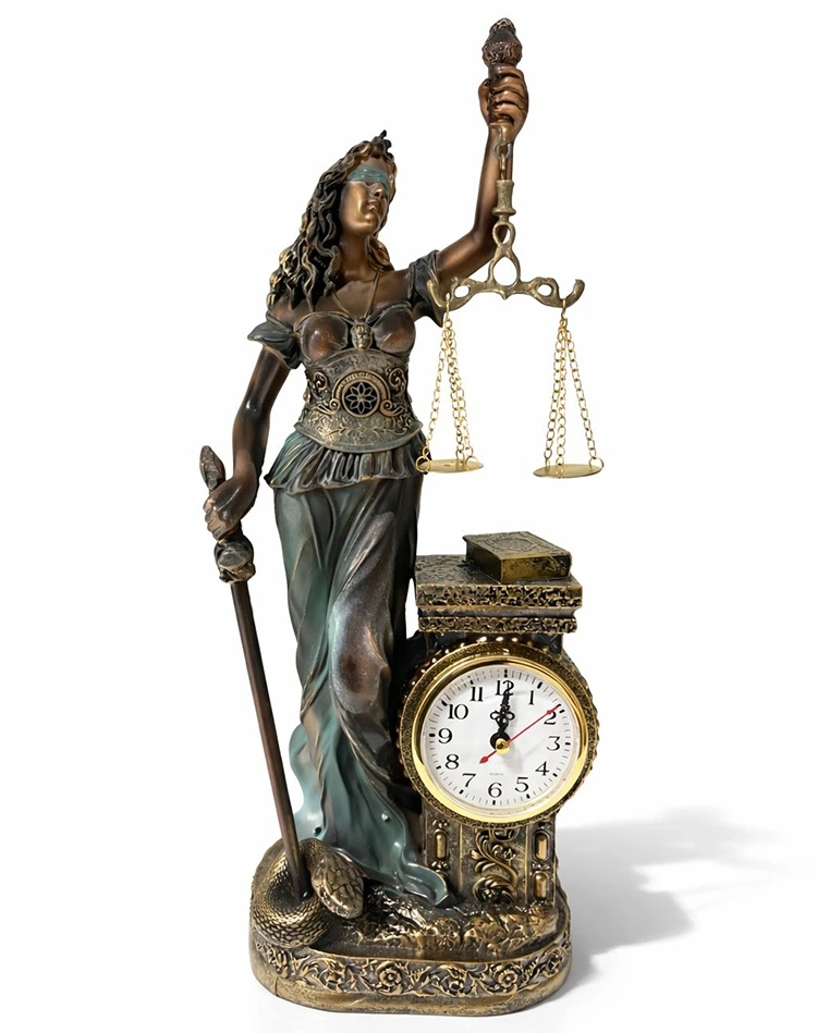15x10 cm Polyester Saatli Adalet Figürü