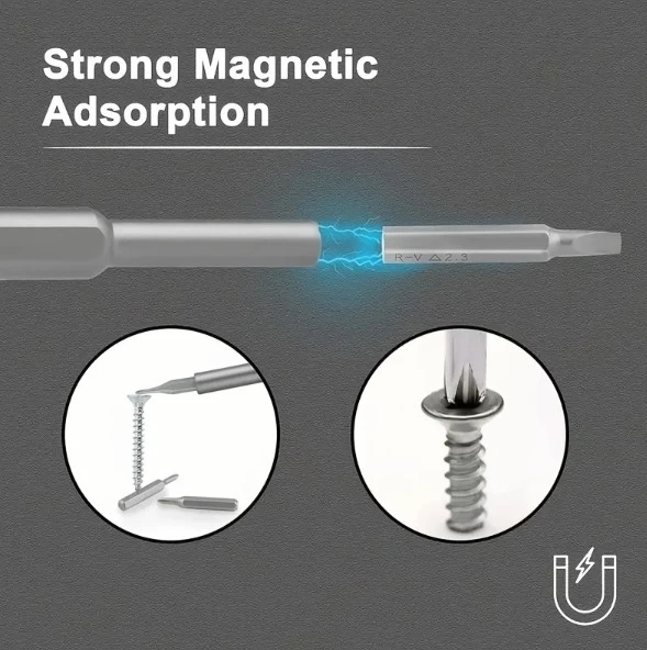 4. Dayanıklı ve güvenilir: tornavida uçları, dayanıklılık ve uzun ömürlü performans sağlayan yüksek kaliteli malzemelerden yapılmıştır. Sık kullanıma dayanacak şekilde tasarlanmıştır ve verimli vidalama için güvenilir bir tutuş sağlar.