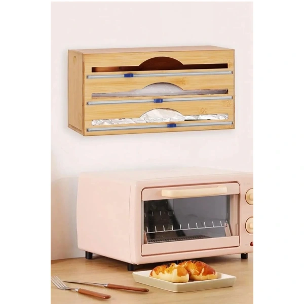 3 BÖLMELİ FOLYO KESME STANDIÜrün ÖzellikleriStreç folyo kesme standı, mutfakta düzeni sağlamak ve pratik kullanım sunmak için tasarlanmıştır. Yüksek kaliteli ahşaptan üretilmiş olup, folyo, streç film ve yağlı kağıt gibi mutfak malzemelerini düzenli bir şekilde saklamanıza yardımcı olur. Üzerinde bulunan kesme aparatı sayesinde, folyo ve streç filmleri zahmetsizce kesebilirsiniz. Estetik ve dayanıklı yapısı sayesinde mutfak dekoruna uyum sağlar ve yer tasarrufu sağlar.Paket İçeriği1 Adet 3 Bölmeli Folyo Kesme Standı