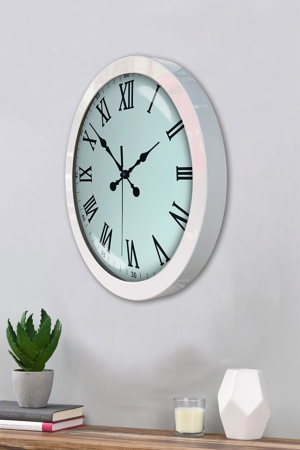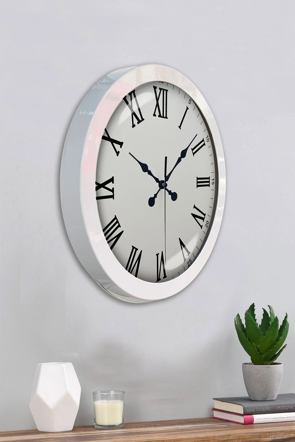 Şık ve modern tasarımıyla dikkat çeken 36 cm beyaz fırın boyalı duvar saatimiz, sessiz akar saniye mekanizmasıyla konforlu bir kullanım sunar. Gerçek cam koruma paneli sayesinde uzun ömürlü ve dayanıklıdır. Estetik görünümüyle hem ev hem de iş yerleri için ideal bir dekoratif üründür.