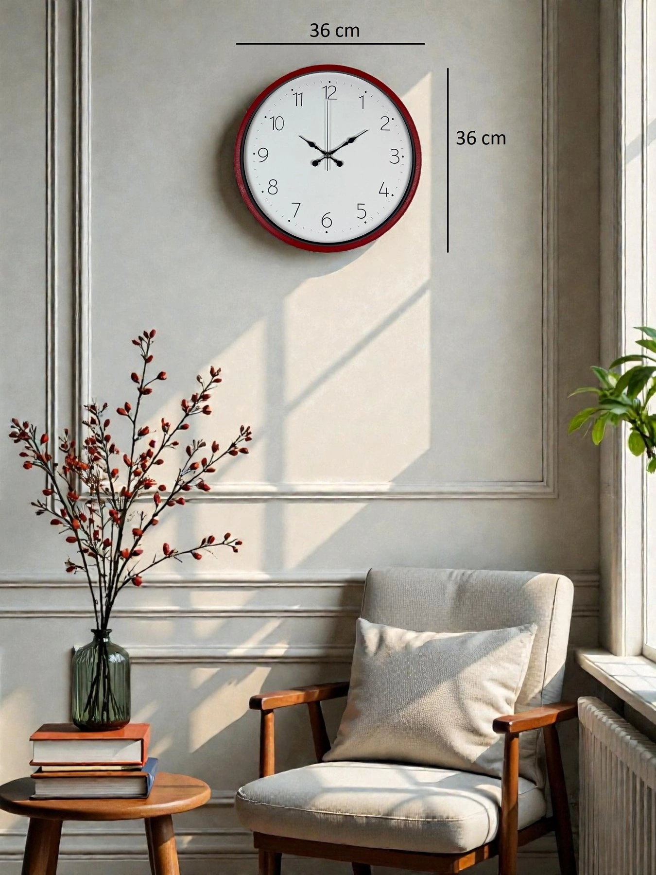 Ev, ofis, mutfak veya çalışma odanıza modern bir dokunuş katmak için tasarlanan 36 cm duvar saati, dayanıklı plastik kasası ve 2 mm kalınlığındaki gerçek cam ön yüzeyiyle kaliteli bir kullanım sunar. Sessiz çalışan mekanizması sayesinde tıkırtı yapmaz, yaşam alanınızda huzurlu bir ortam oluşturur.