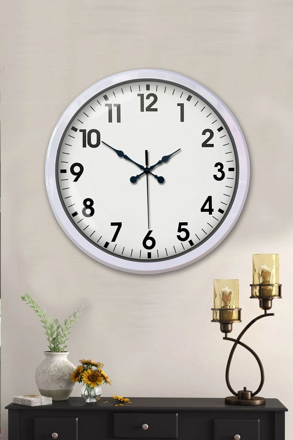 52 cm Beyaz Metal Standart Duvar Saati