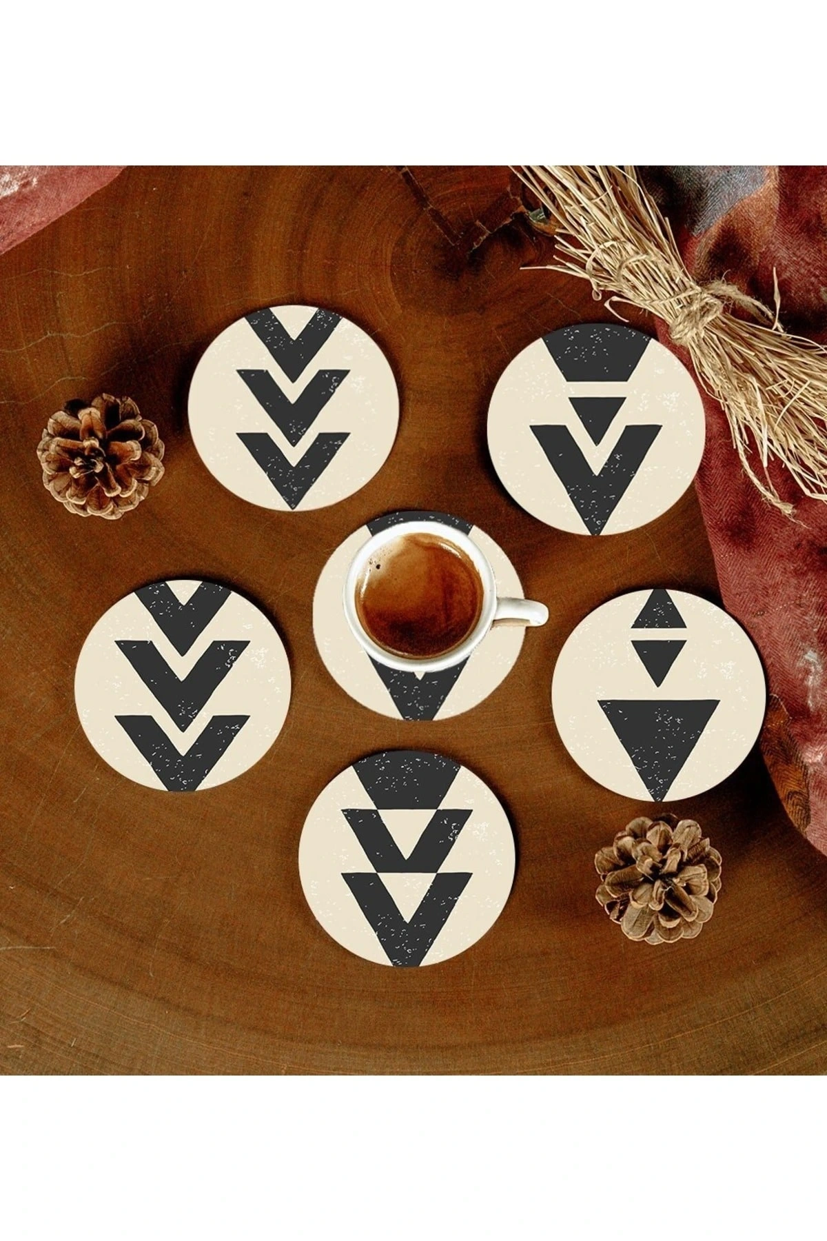 6 Adet Desenli Mdf Bardak Altlığı
