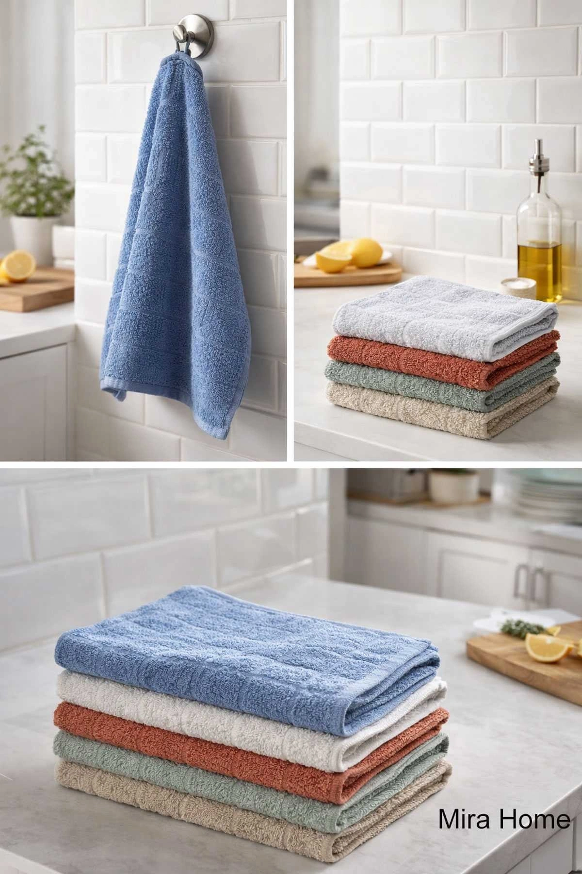 Mutfak işlerinizi daha keyifli hale getiren Mira Home 6'lı Havlu Seti, yüksek emici buklet dokusu ve modern renk paletiyle hem pratiklik hem de şıklığı bir arada sunuyor. Mutfak tezgahınızda, banyonuzda veya günlük el havlusu ihtiyacınızda güvenle kullanabileceğiniz bu set, yumuşak dokusuyla cildinize dosttur.