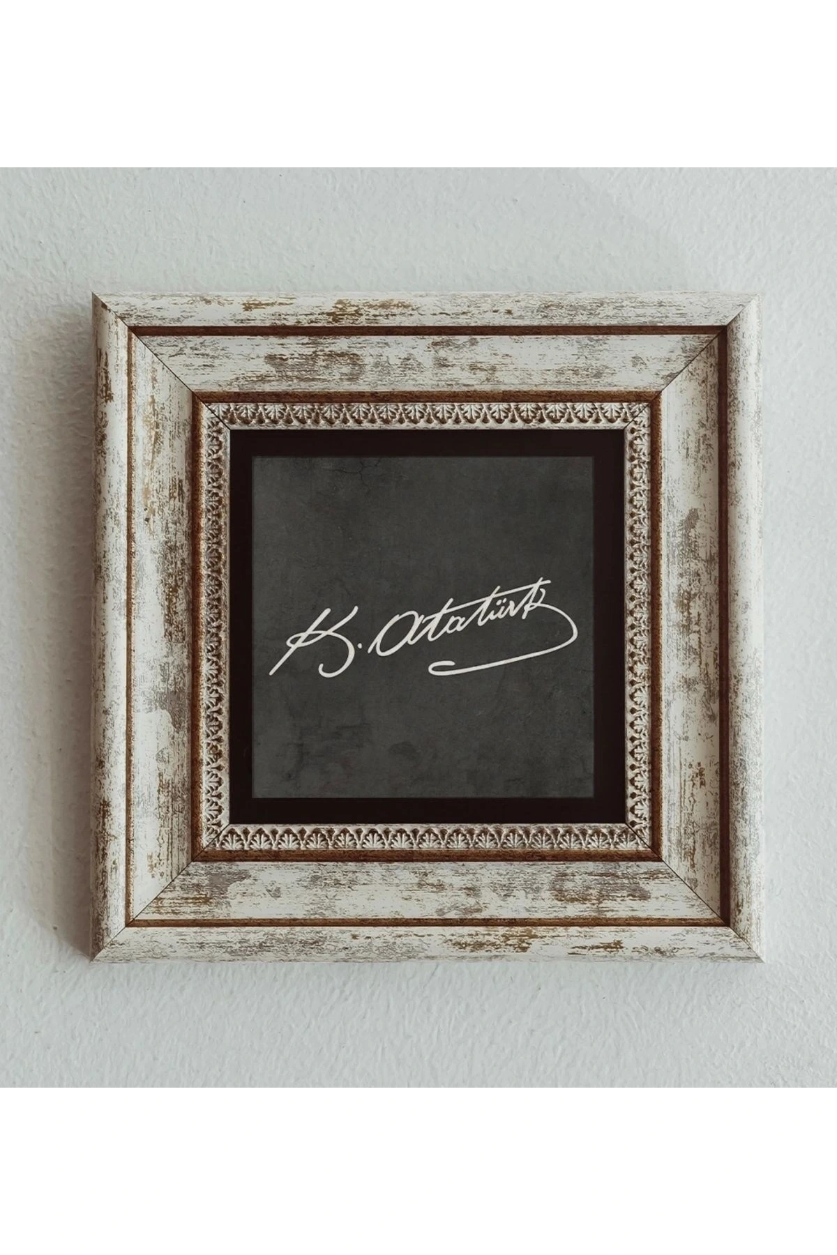 Atatürk Imzası Çerçeveli Taş Tablo , Çerçeveli Taş Duvar Dekoru 20 cm