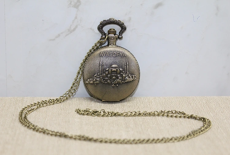 AYASOFYA TASARIMLI KÖSTEKLİ SAATÜrün ÖzellikleriAyasofya Tasarımlı Köstekli Saat, 4x5 cm boyutunda olup, kapağında Ayasofya'nın kabartmalı işleme detaylarıyla oldukça dikkat çekmektedir. Bu nostaljik köstekli saat, tarihi Ayasofya'nın zarif tasarımını yansıtarak hem görsel açıdan etkileyici hem de fonksiyonel bir aksesuar olarak kullanılabilir. Ayasofya'nın mimarisine hayran kalanlar için harika bir koleksiyon parçasıdır. Ayrıca, özel günlerde veya anlamlı hediyeler olarak verilebilecek şık bir tercihtir.Paket İçeriği1 Adet Ayasofya Tasarımlı Köstekli Saat