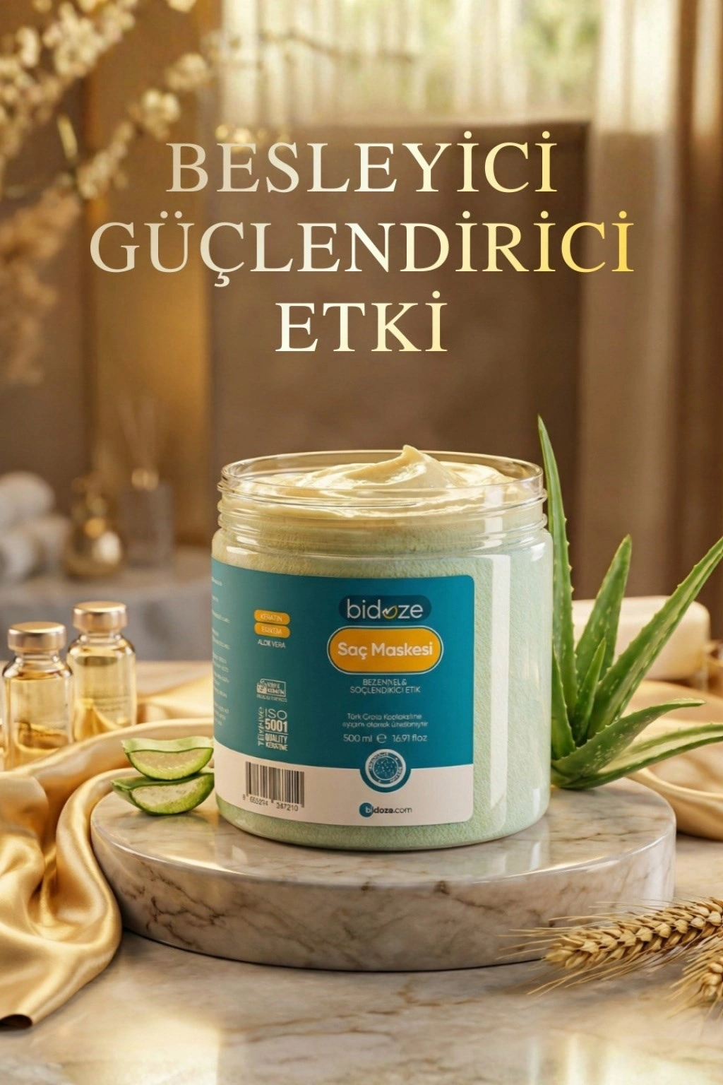 Bidoze Kolajen & Keratin Özlü Onarıcı Saç Maskesi 500 Ml | Yıpranmış Saçlar İçin Yoğun Bakım