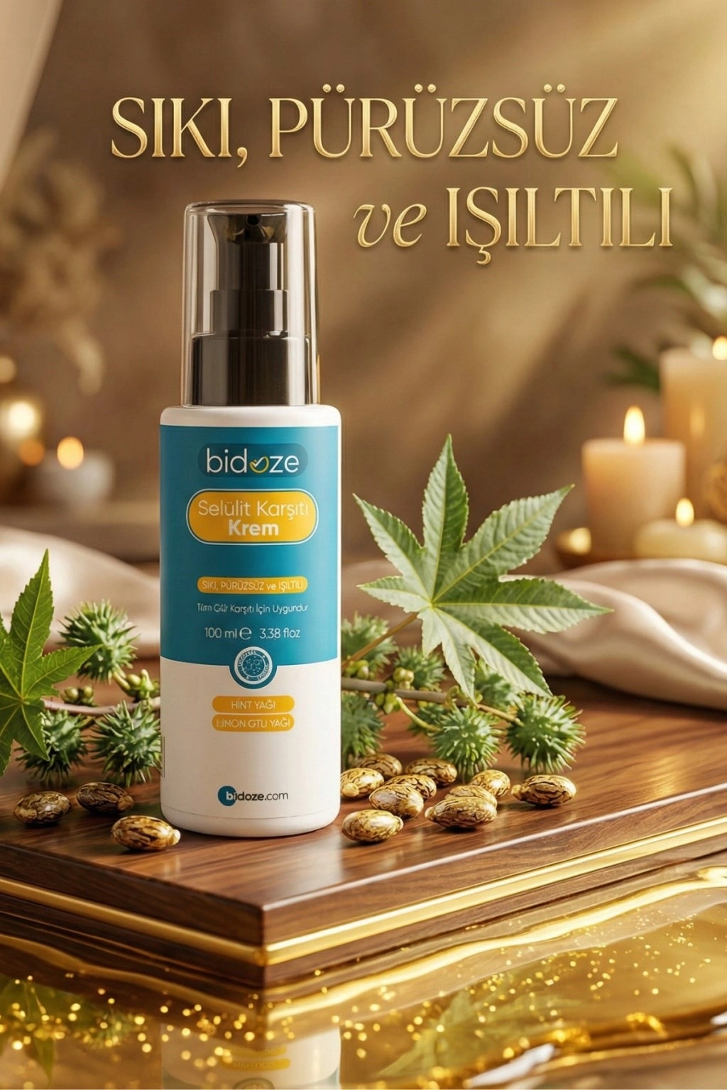 Bidoze Selülit Karşıtı Krem, inatçı selülit oluşumunu engellemek, var olan selülit görünümünü hafifletmek ve cildi sıkılaştırmak için geliştirilmiş yüksek performanslı bir vücut bakım ürünüdür.