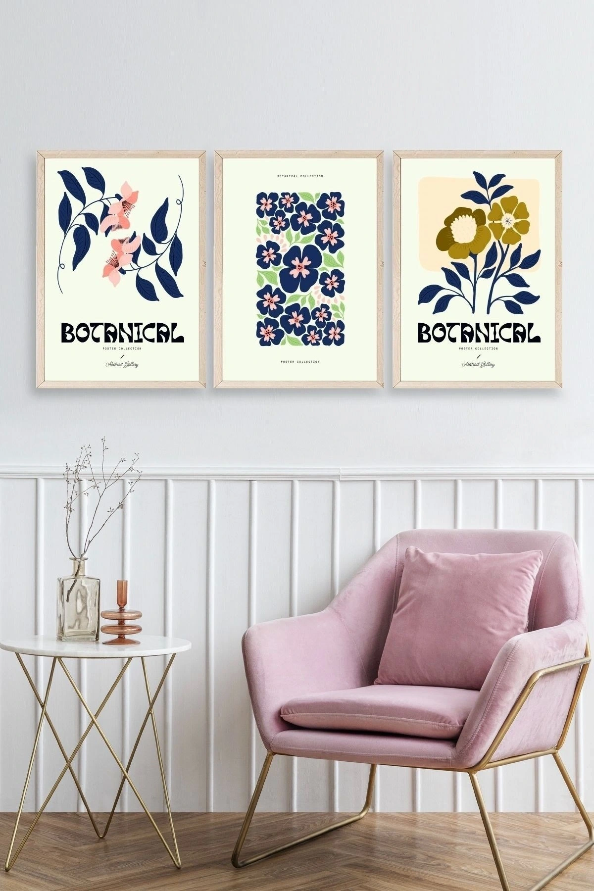 Botanik Üçlü Ahşap Çerçeveli Tablo 23 x 30