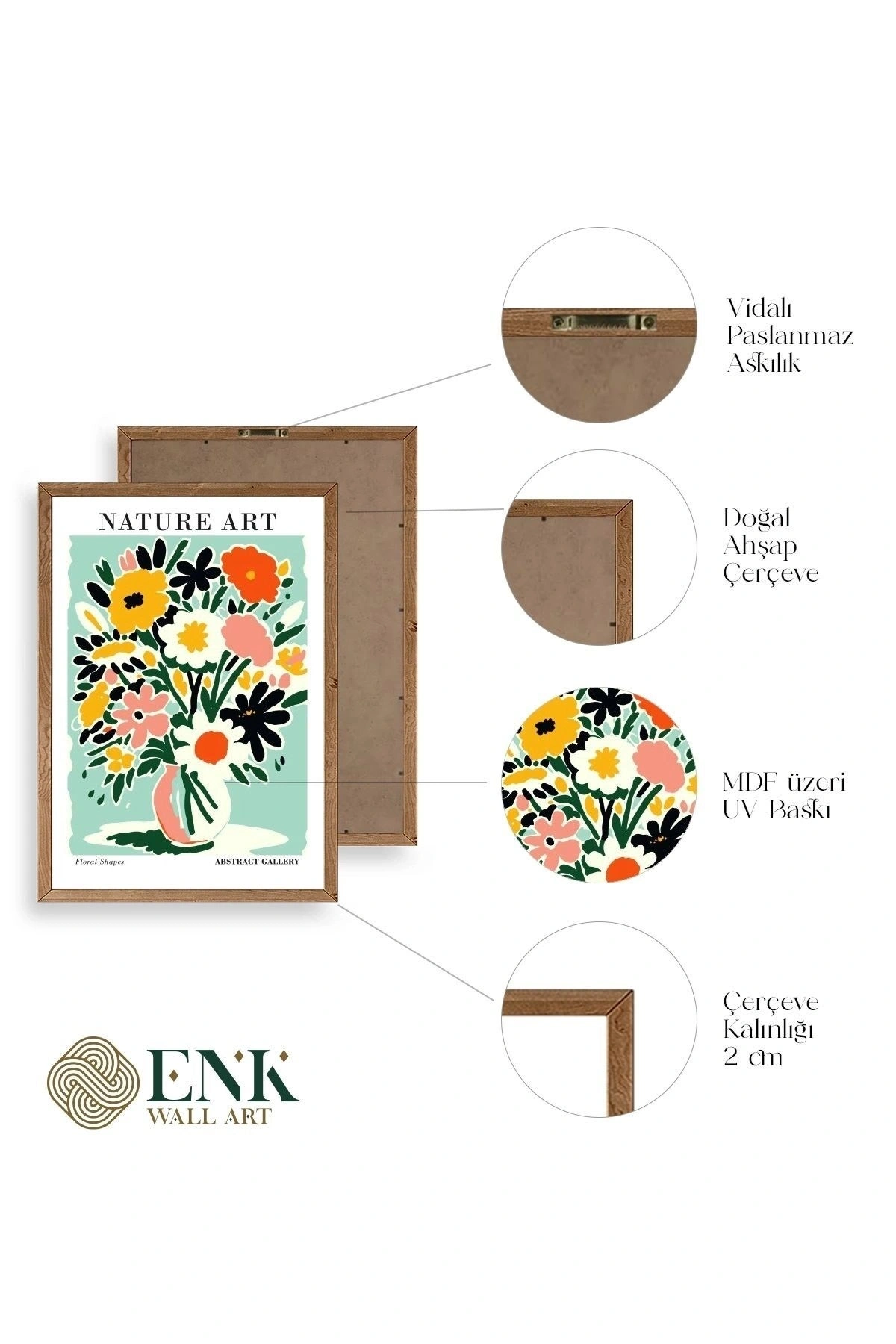 Tablolarımız gerçek ahşap çerçevelidir, çerçeve görünümlü değildir. ; ENK Wall Art Olarak Ahşap Çerçeveli Tablolar Üretiyoruz. ; Tablolarımız tek parça, 3 Parça, 5 Parça ve daha çok kategoride tasarımcılarımız tarafından ev ve ofisleriniz duvarları süslemek için tasarlanmaktadır. ; Ahşap Çerçeveli Duvar Tabloları ile yaşam alanlarınıza yepyeni bir görünüm kazandırın. ; Yıllarca dayanacağından emin olduğumuz sağlam çerçevelere sahip yüksek kaliteli ahşaptan üretilmiştir. ; İster bir köşeyi süslemek isteyin, ister evinizi yenilemek , bu ahşap tablolar herhangi bir yaşam alanına stil ve işlev getirecektir. ; Duvara kolay bir şekilde monte edilir. ; Uzun ömürlü kullanım için sağlam ahşap çerçeveden yapılmış, dayanıklı ve güçlü. ; Duvara monte edilebilir tasarımı, yaşam alanlarında veya yatak odalarında duvara kolayca asılmasını sağlar. ; Pürüzsüz üst yüzeyi temiz kalmayı kolaylaştırır. ; Herhangi bir stile uyacak şekilde çeşitli renklerde gelir. ; Kolay yeniden düzenleme için hafif ve portatif. ; Küçük oturma odaları veya dar alanlar için mükemmel boyut. ; Eve taşınma hediyesi olarak idealdir. ; Herhangi bir evin dekorunu süslemek için harika bir yol. ; Herhangi bir modern veya çağdaş iç tasarıma mükemmel bir katkı. ; Tablo içi 3 mm mdf (ahşap) malzeme üzeri uv baskıdır. ; Renkler canlı ve solma yapmaz. ; Kırılma, bükülme ve çizilmeye karşı dayanıklıdır.;