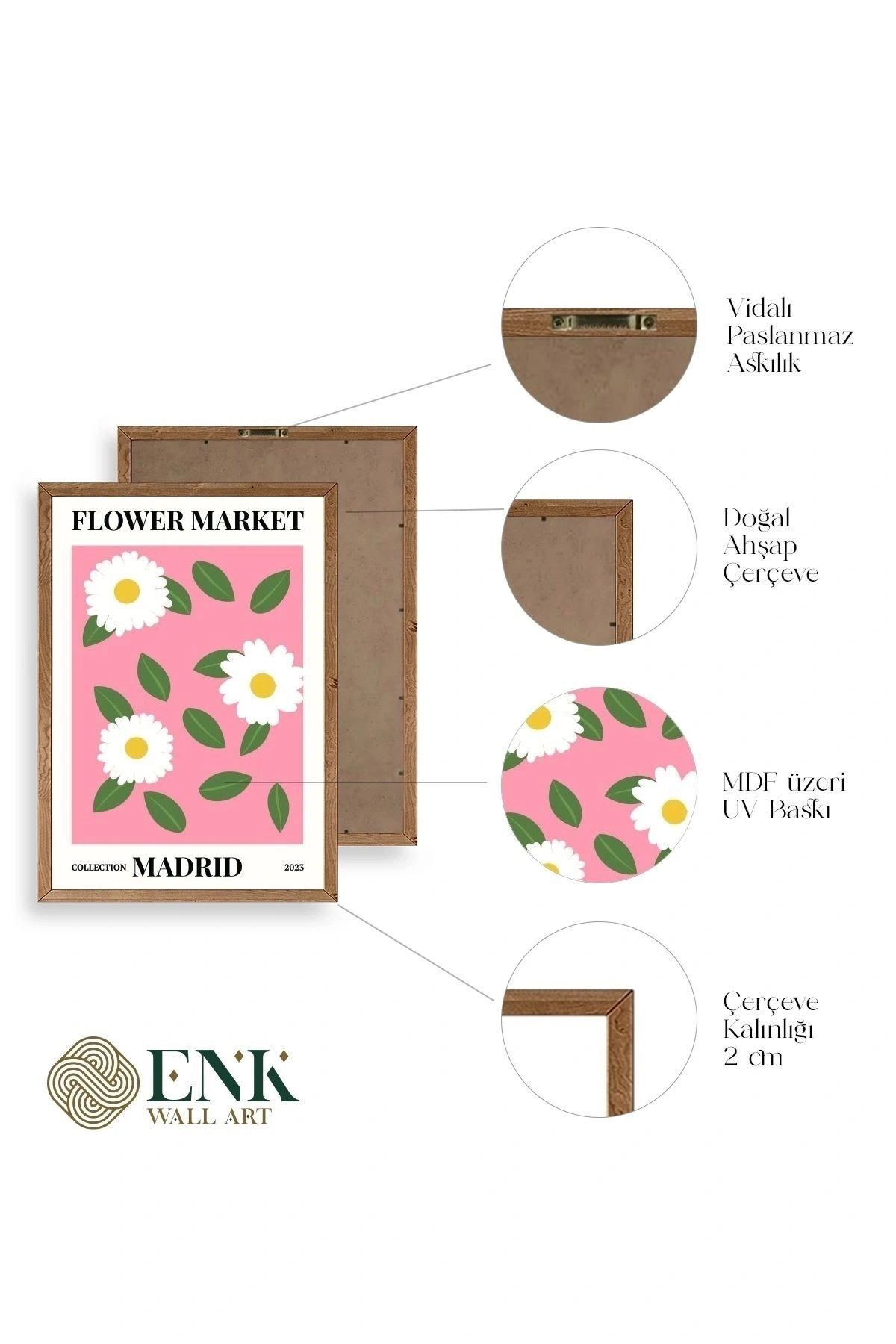 Tablolarımız gerçek ahşap çerçevelidir, çerçeve görünümlü değildir. ; ENK Wall Art Olarak Ahşap Çerçeveli Tablolar Üretiyoruz. ; Tablolarımız tek parça, 3 Parça, 5 Parça ve daha çok kategoride tasarımcılarımız tarafından ev ve ofisleriniz duvarları süslemek için tasarlanmaktadır. ; Ahşap Çerçeveli Duvar Tabloları ile yaşam alanlarınıza yepyeni bir görünüm kazandırın. ; Yıllarca dayanacağından emin olduğumuz sağlam çerçevelere sahip yüksek kaliteli ahşaptan üretilmiştir. ; İster bir köşeyi süslemek isteyin, ister evinizi yenilemek , bu ahşap tablolar herhangi bir yaşam alanına stil ve işlev getirecektir. ; Duvara kolay bir şekilde monte edilir. ; Uzun ömürlü kullanım için sağlam ahşap çerçeveden yapılmış, dayanıklı ve güçlü. ; Duvara monte edilebilir tasarımı, yaşam alanlarında veya yatak odalarında duvara kolayca asılmasını sağlar. ; Pürüzsüz üst yüzeyi temiz kalmayı kolaylaştırır. ; Herhangi bir stile uyacak şekilde çeşitli renklerde gelir. ; Kolay yeniden düzenleme için hafif ve portatif. ; Küçük oturma odaları veya dar alanlar için mükemmel boyut. ; Eve taşınma hediyesi olarak idealdir. ; Herhangi bir evin dekorunu süslemek için harika bir yol. ; Herhangi bir modern veya çağdaş iç tasarıma mükemmel bir katkı. ; Tablo içi 3 mm mdf (ahşap) malzeme üzeri uv baskıdır. ; Renkler canlı ve solma yapmaz. ; Kırılma, bükülme ve çizilmeye karşı dayanıklıdır.;