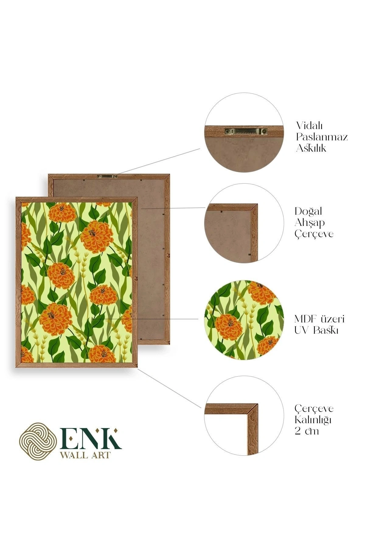Tablolarımız gerçek ahşap çerçevelidir, çerçeve görünümlü değildir. ; ENK Wall Art Olarak Ahşap Çerçeveli Tablolar Üretiyoruz. ; Tablolarımız tek parça, 3 Parça, 5 Parça ve daha çok kategoride tasarımcılarımız tarafından ev ve ofisleriniz duvarları süslemek için tasarlanmaktadır. ; Ahşap Çerçeveli Duvar Tabloları ile yaşam alanlarınıza yepyeni bir görünüm kazandırın. ; Yıllarca dayanacağından emin olduğumuz sağlam çerçevelere sahip yüksek kaliteli ahşaptan üretilmiştir. ; İster bir köşeyi süslemek isteyin, ister evinizi yenilemek , bu ahşap tablolar herhangi bir yaşam alanına stil ve işlev getirecektir. ; Duvara kolay bir şekilde monte edilir. ; Uzun ömürlü kullanım için sağlam ahşap çerçeveden yapılmış, dayanıklı ve güçlü. ; Duvara monte edilebilir tasarımı, yaşam alanlarında veya yatak odalarında duvara kolayca asılmasını sağlar. ; Pürüzsüz üst yüzeyi temiz kalmayı kolaylaştırır. ; Herhangi bir stile uyacak şekilde çeşitli renklerde gelir. ; Kolay yeniden düzenleme için hafif ve portatif. ; Küçük oturma odaları veya dar alanlar için mükemmel boyut. ; Eve taşınma hediyesi olarak idealdir. ; Herhangi bir evin dekorunu süslemek için harika bir yol. ; Herhangi bir modern veya çağdaş iç tasarıma mükemmel bir katkı. ; Tablo içi 3 mm mdf (ahşap) malzeme üzeri uv baskıdır. ; Renkler canlı ve solma yapmaz. ; Kırılma, bükülme ve çizilmeye karşı dayanıklıdır.;