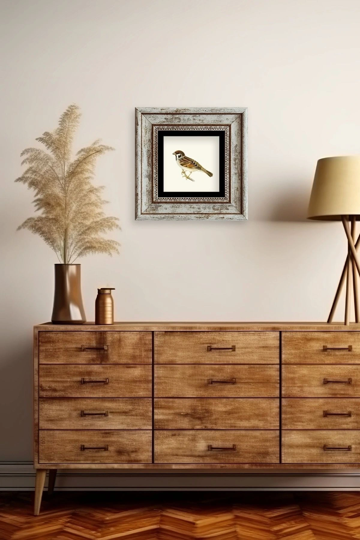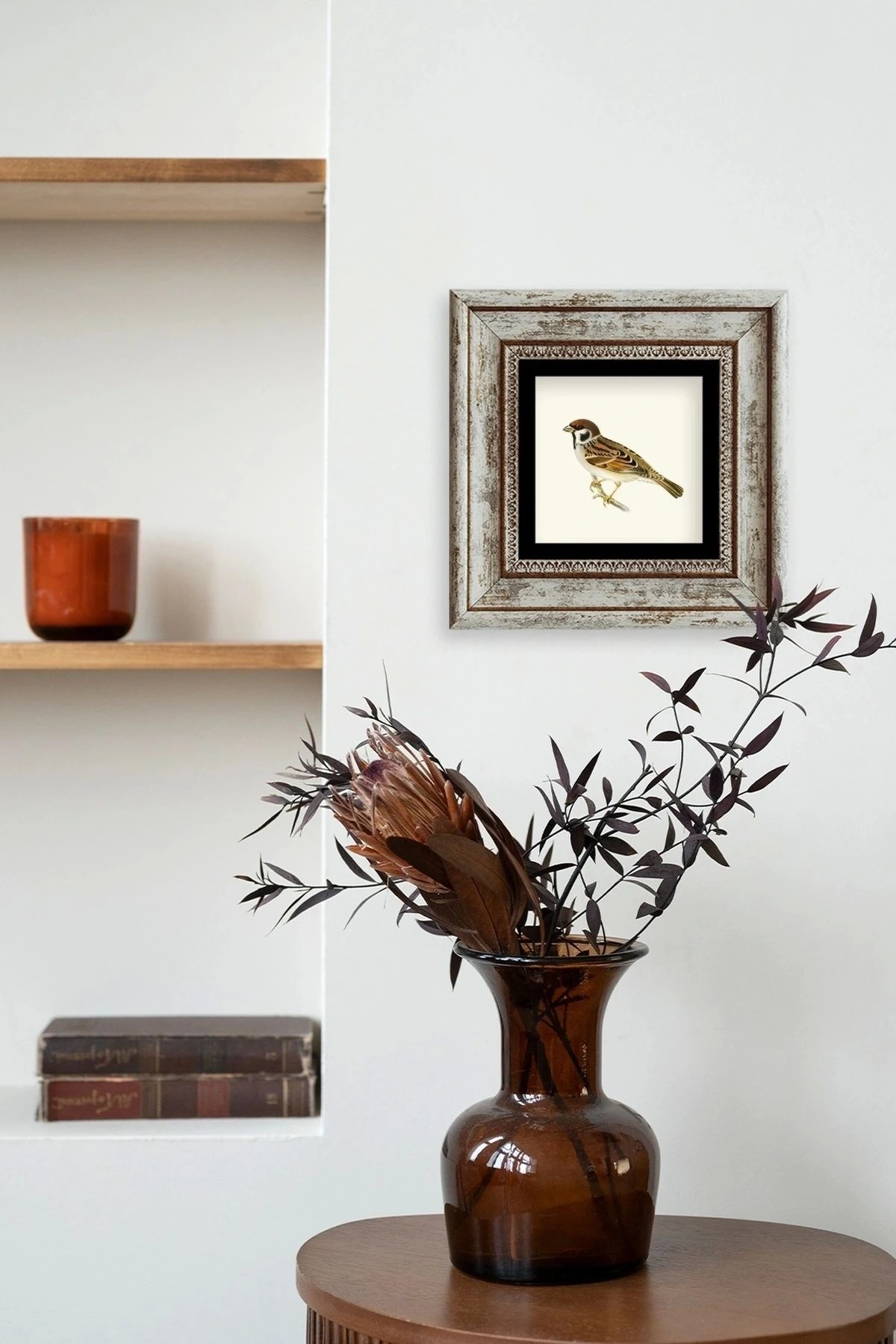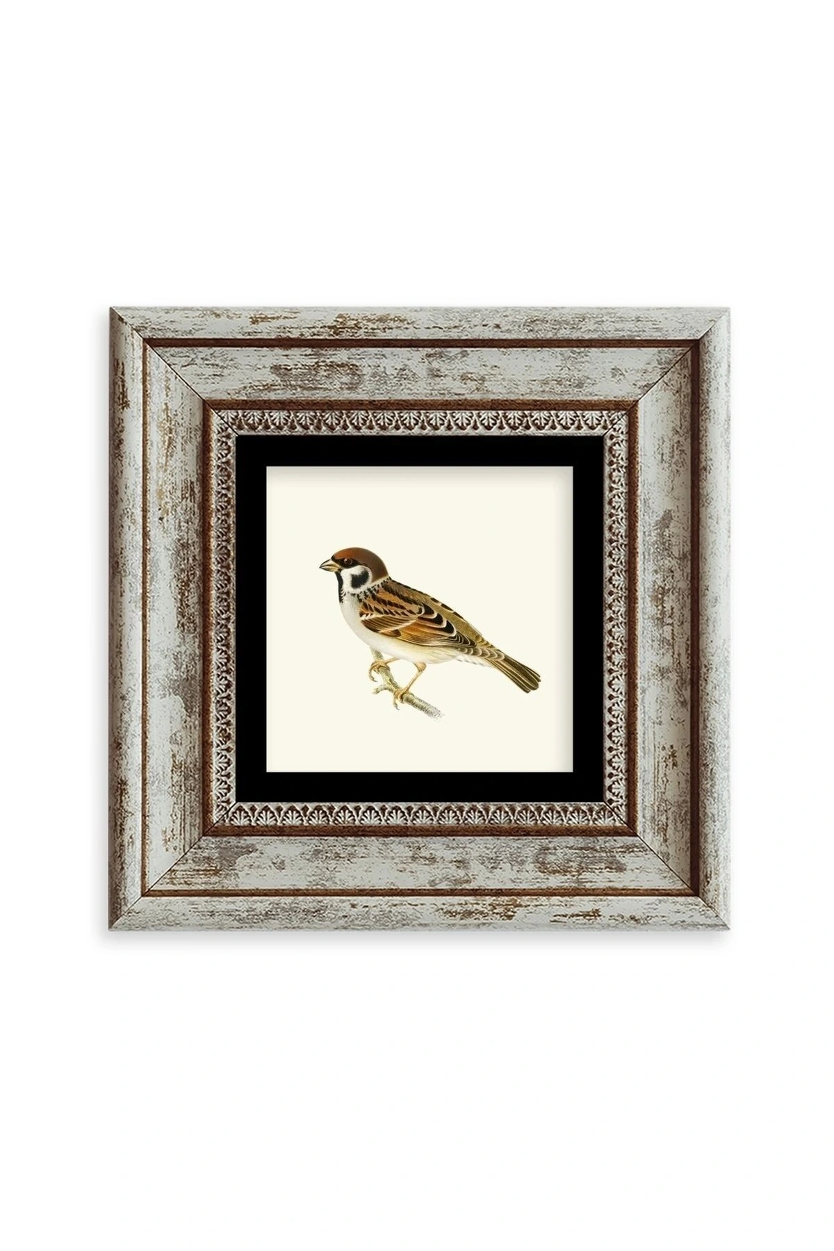 Daldaki Serçe Çerçeveli Taş Tablo 20 cm