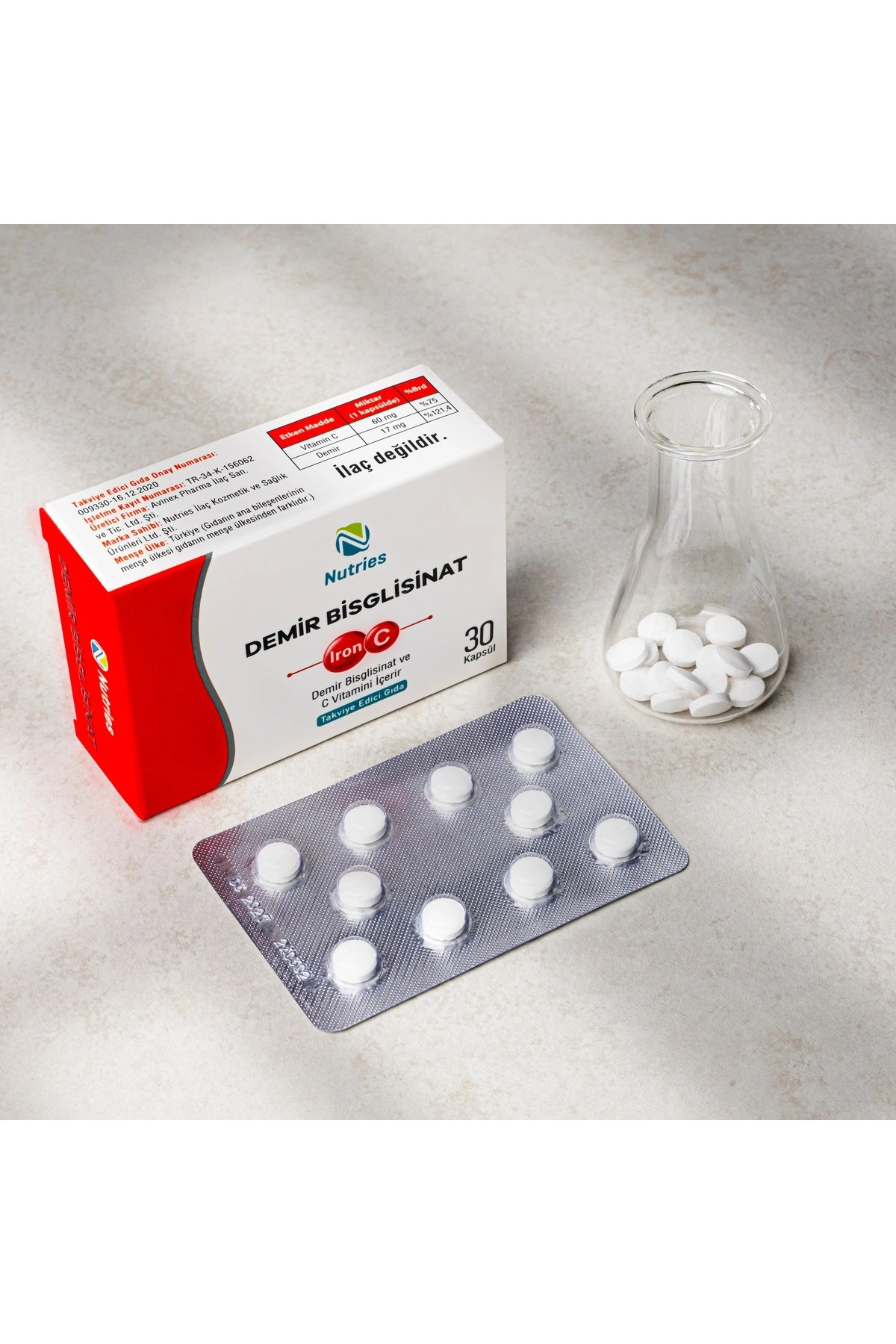 Demir Bisglisinat 30 Kapsül – Yüksek Biyoyararlanımlı Demir ve C Vitamini DesteğiBu ürün, her kapsülde 17 mg Demir Bisglisinat ve 60 mg C vitamini içeren etkili bir takviyedir. Demir Bisglisinat, vücut tarafından kolayca emilen ve kullanılan yüksek biyoyararlanıma sahip bir demir formudur. Bu sayede, demir eksikliği anemisi ve diğer demir yetersizliklerinin giderilmesinde daha etkili sonuçlar sağlar.C vitamini ise demir emilimini artıran güçlü bir antioksidandır. Demir ile birlikte alındığında, bağırsaklarda demirin daha kolay çözünür hale gelmesine yardımcı olur ve emilimini önemli ölçüde artırır. Böylece, vücudun demiri daha verimli kullanmasını sağlar.Demir eksikliği anemisi olanlar veya demir seviyelerini artırmak isteyenler için ideal olan bu kombinasyon, düzenli kullanımda enerji seviyelerinin artmasına, halsizlik ve yorgunluğun azalmasına katkıda bulunur.