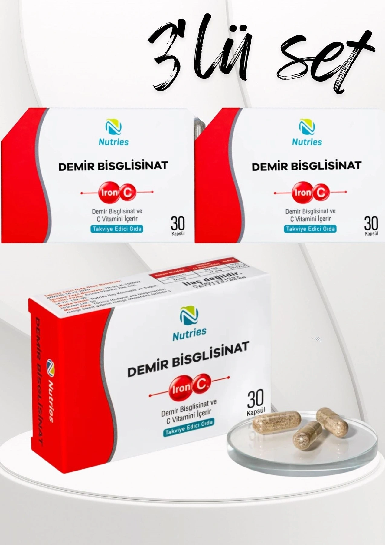 Demir Bisglisinat 30 Kapsül – 3’lü Ekonomik Set