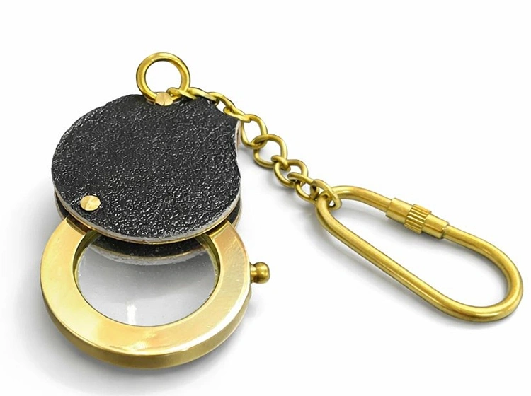 Deri Detaylı Pirinç Büyüteç Anahtarlık