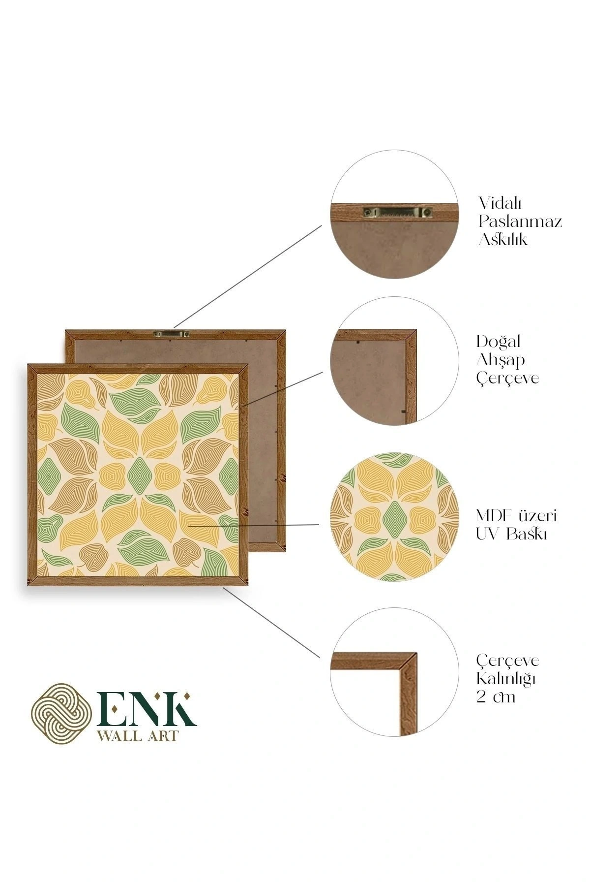Tablolarımız gerçek ahşap çerçevelidir, çerçeve görünümlü değildir. ; ENK Wall Art Olarak Ahşap Çerçeveli Tablolar Üretiyoruz. ; Tablolarımız tek parça, 3 Parça, 5 Parça ve daha çok kategoride tasarımcılarımız tarafından ev ve ofisleriniz duvarları süslemek için tasarlanmaktadır. ; Ahşap Çerçeveli Duvar Tabloları ile yaşam alanlarınıza yepyeni bir görünüm kazandırın. ; Yıllarca dayanacağından emin olduğumuz sağlam çerçevelere sahip yüksek kaliteli ahşaptan üretilmiştir. ; İster bir köşeyi süslemek isteyin, ister evinizi yenilemek , bu ahşap tablolar herhangi bir yaşam alanına stil ve işlev getirecektir. ; Duvara kolay bir şekilde monte edilir. ; Uzun ömürlü kullanım için sağlam ahşap çerçeveden yapılmış, dayanıklı ve güçlü. ; Duvara monte edilebilir tasarımı, yaşam alanlarında veya yatak odalarında duvara kolayca asılmasını sağlar. ; Pürüzsüz üst yüzeyi temiz kalmayı kolaylaştırır. ; Herhangi bir stile uyacak şekilde çeşitli renklerde gelir. ; Kolay yeniden düzenleme için hafif ve portatif. ; Küçük oturma odaları veya dar alanlar için mükemmel boyut. ; Eve taşınma hediyesi olarak idealdir. ; Herhangi bir evin dekorunu süslemek için harika bir yol. ; Herhangi bir modern veya çağdaş iç tasarıma mükemmel bir katkı. ; Tablo içi 3 mm mdf (ahşap) malzeme üzeri uv baskıdır. ; Renkler canlı ve solma yapmaz. ; Kırılma, bükülme ve çizilmeye karşı dayanıklıdır.;