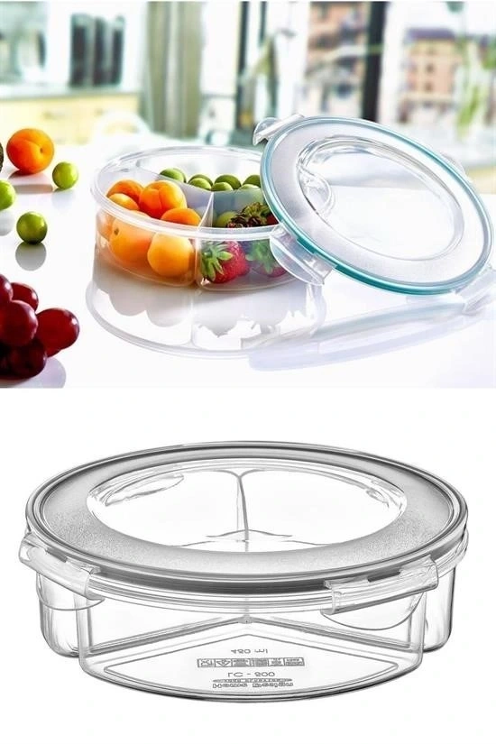 Durukar® 3 Bölmeli Kilitli Kapaklı 1,35 Litre Yuvarlak Erzak Saklama Kabı Diyet Saklama Kabı Taşınabilir Beslenme Kabı