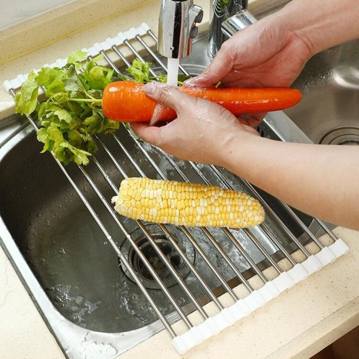 1 x Durukar® Evye Üstü Katlanır Nihale Paslanmaz Çelik Pratik Sebze Meyve Bulaşık Kurutma Süzgeci