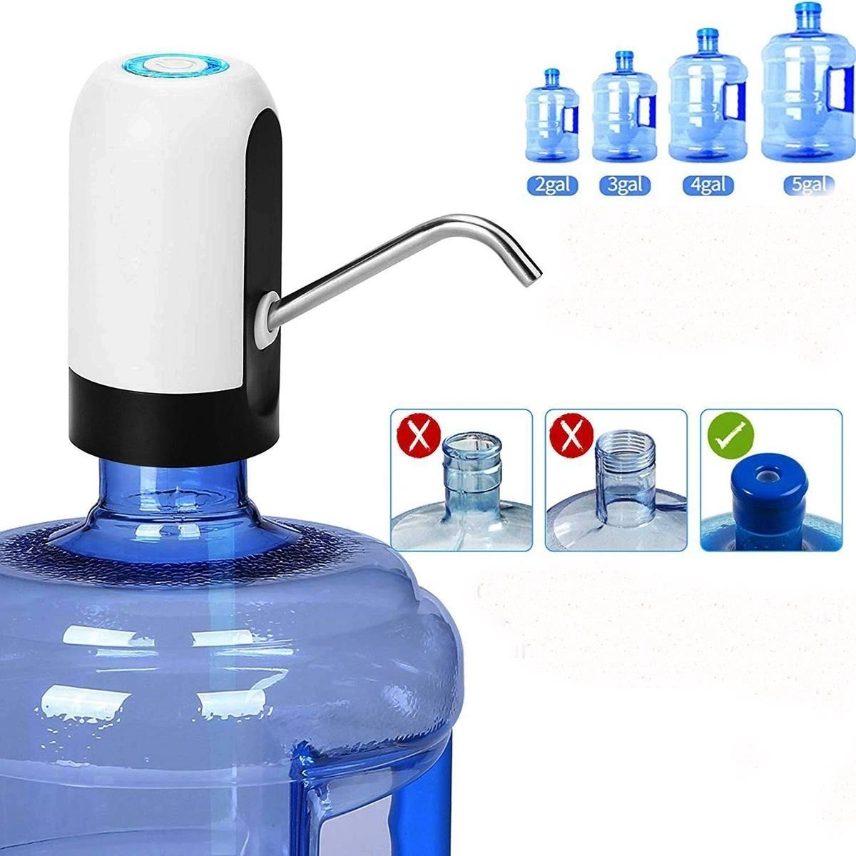Usb ile Şarj Edilebilir Elektrikli Otomatik Su Damacana Su Pompası Otomatik Sebil