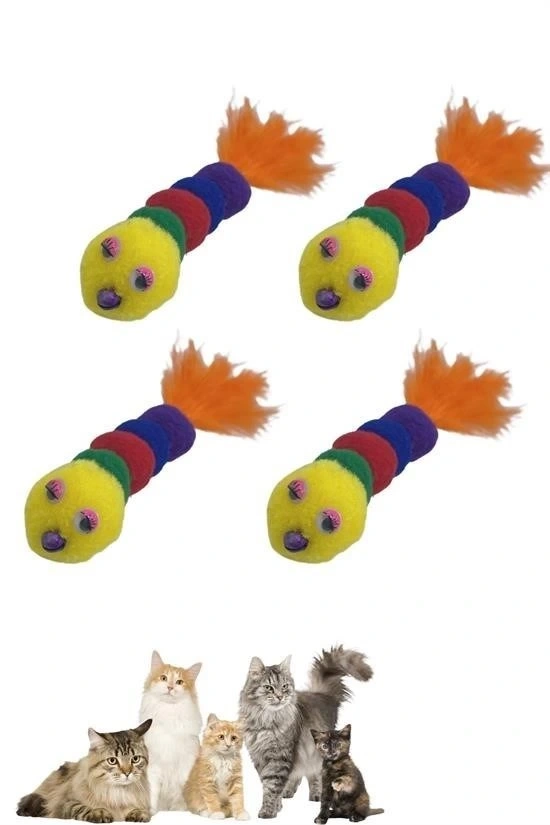 Durukar® Yumuşacık İpli Tırtıl Şeklinde Rengarenk Sevimli Evcil Hayvan Oyuncağı