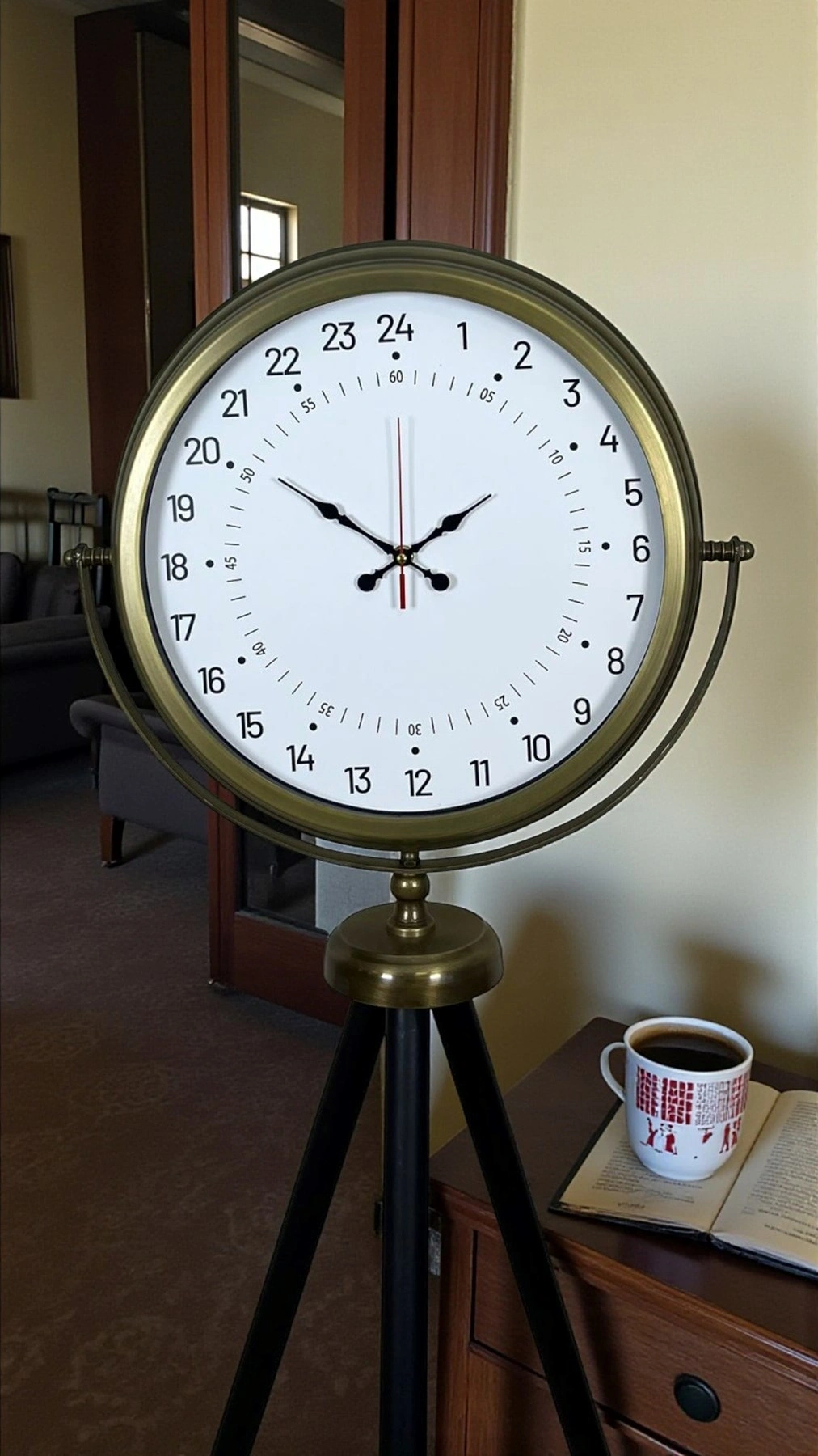 Zamayı sadece göstermekle kalmayıp mekâna karakter kazandıran bu eskitme tripod ayaklı 24 saat göstergeli yer saati, klasik tasarım anlayışını modern bir farkla buluşturur. Standart saatlerden ayrılan en önemli özelliği, 24 saatlik zaman dilimini tek kadran üzerinde göstermesidir. Bu sayede günün tamamını tek bakışta okuyabilir, zamanı daha net ve farklı bir perspektifle takip edebilirsiniz.