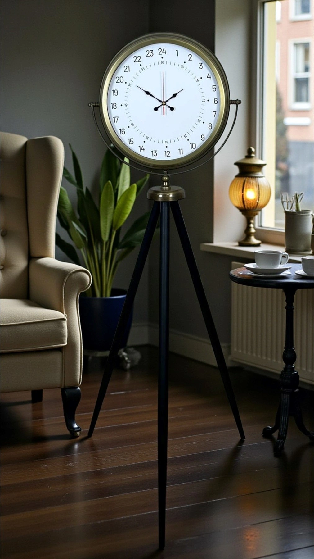 Eskitme 24 Saat Göstergeli Özel Tasarım Tripod Ayaklı Saat