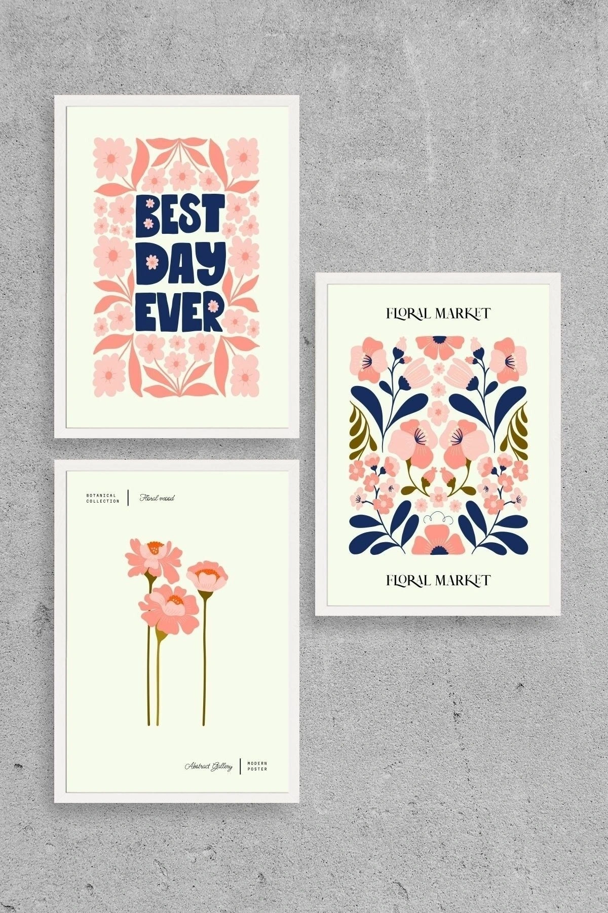 Flower Market Üçlü Ahşap Çerçeveli Tablo 50 x 70