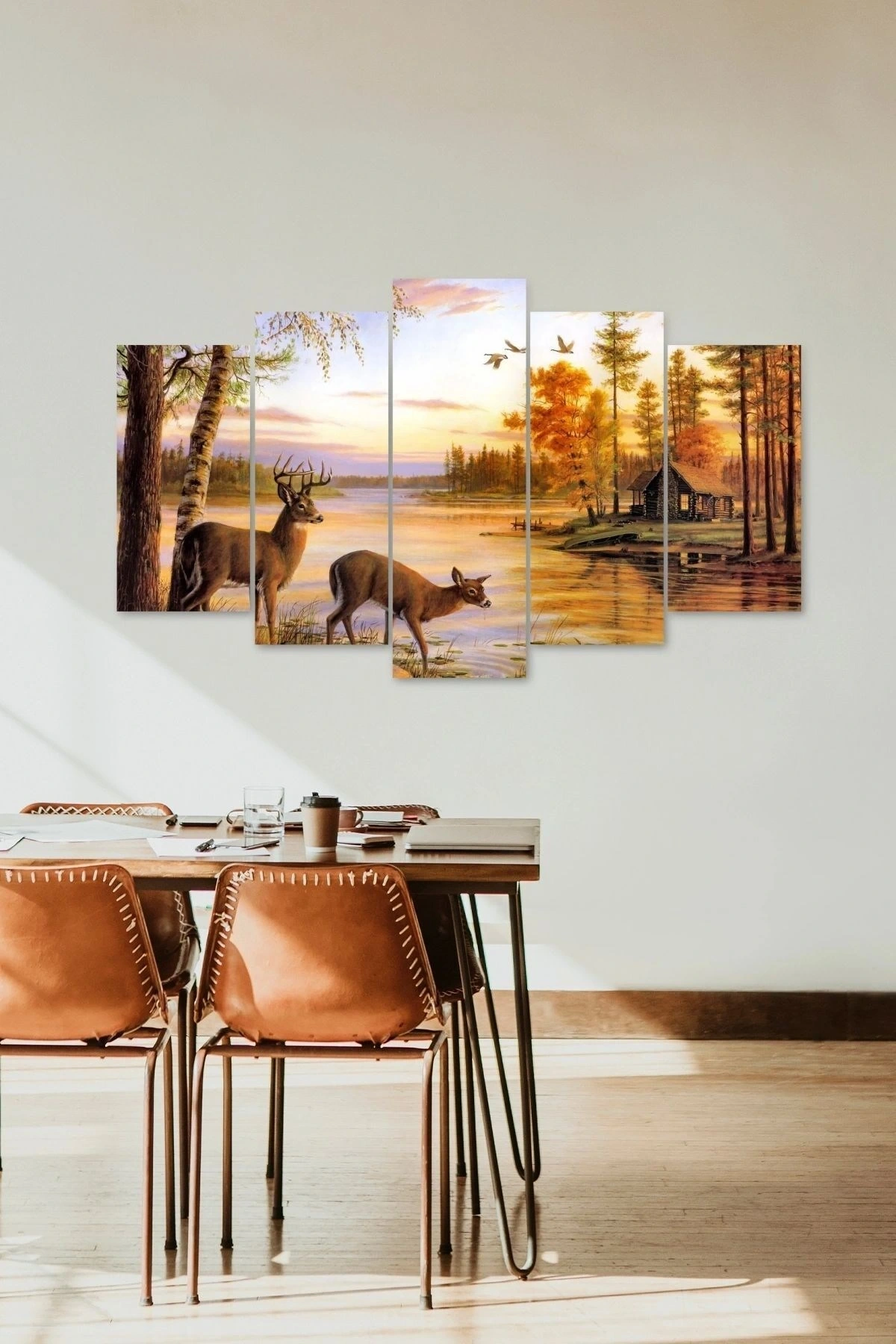 - Modern dekorasyonun vazgeçilmez bir parçası olan bu 5 parçalı MDF tablo, evinizin atmosferini zenginleştirir; - Kaliteli MDF malzemesi sayesinde uzun ömürlü kullanım sunar ve dayanıklılığıyla ön plana çıkar; - Geyik figürleriyle süslenmiş bu tablo, doğal ve estetik bir görünüm sağlar, mekanınıza huzurlu bir dokunuş katar; - Modern tasarımıyla dikkat çeken bu ürün, çağdaş yaşam alanlarına kolayca uyum sağlar ve şıklığıyla göz alıcı bir etki yaratır;