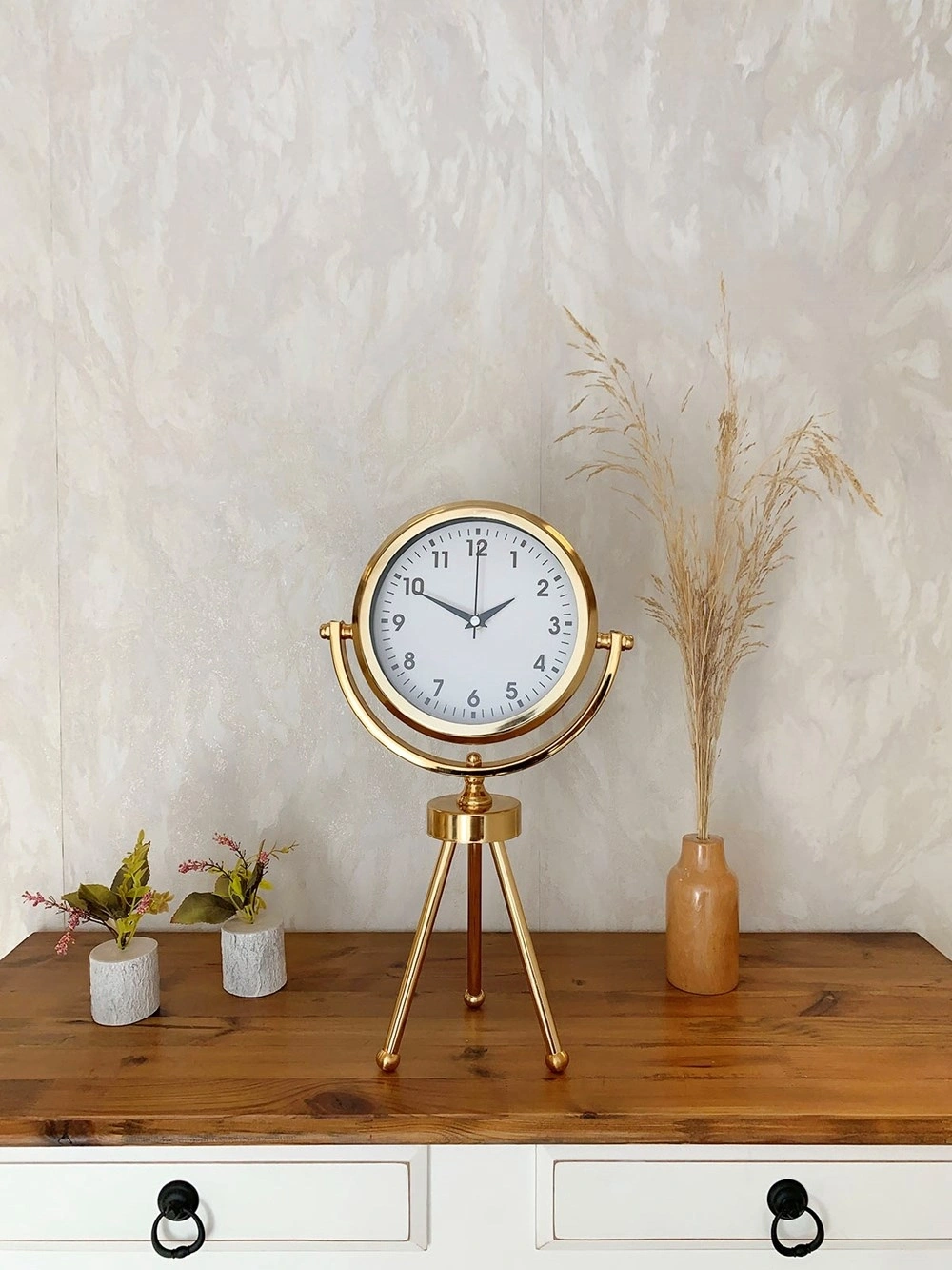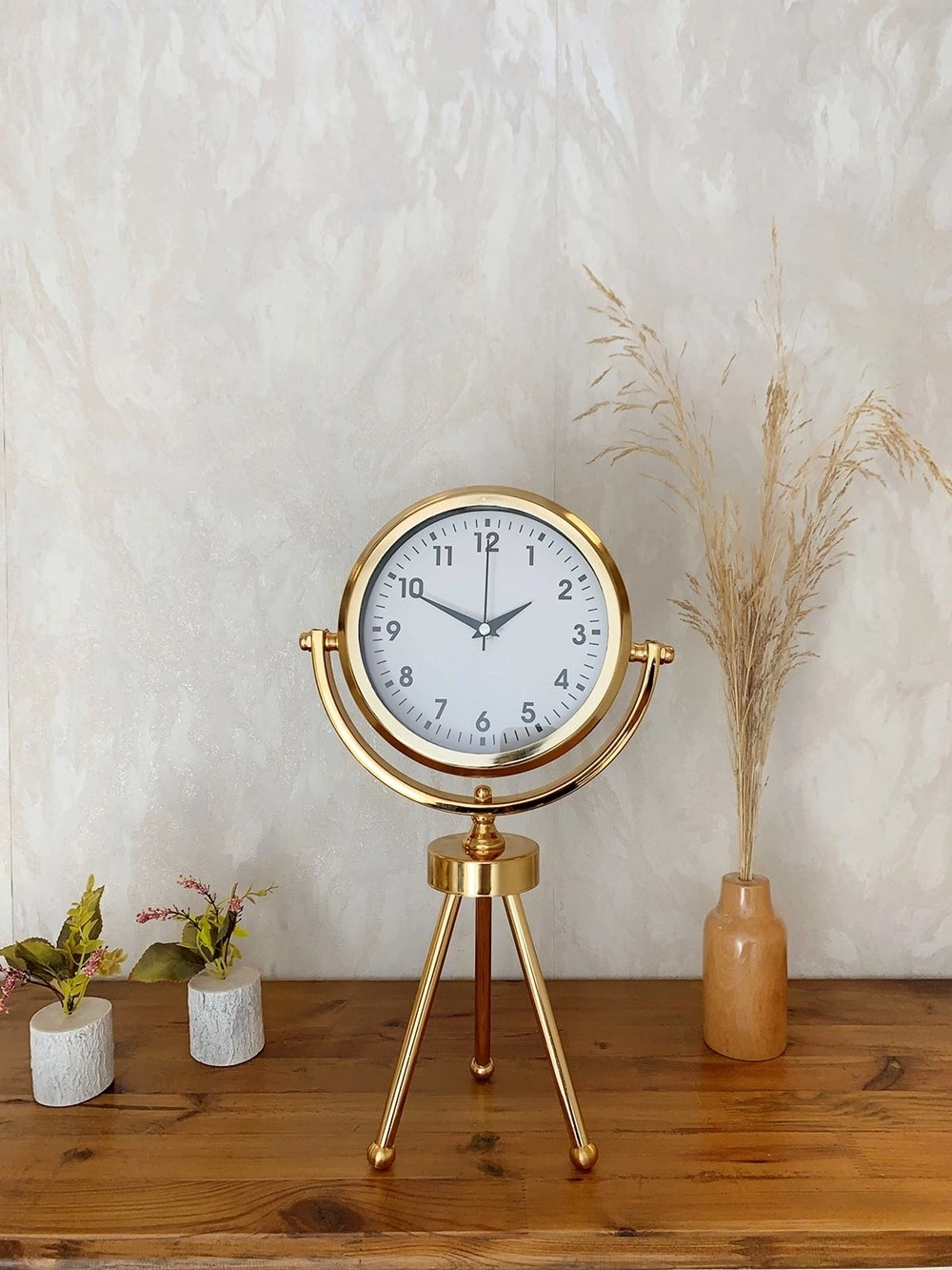 Gold Metal Mini Tripod Lüks Masa Saati 45×26 cm