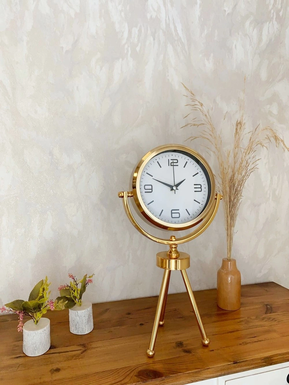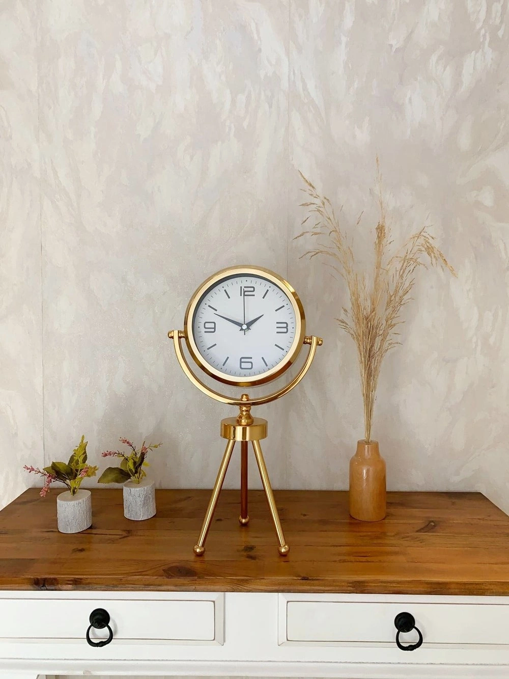 Gold Metal Mini Tripod Modern Masa Saati 45×26 cm