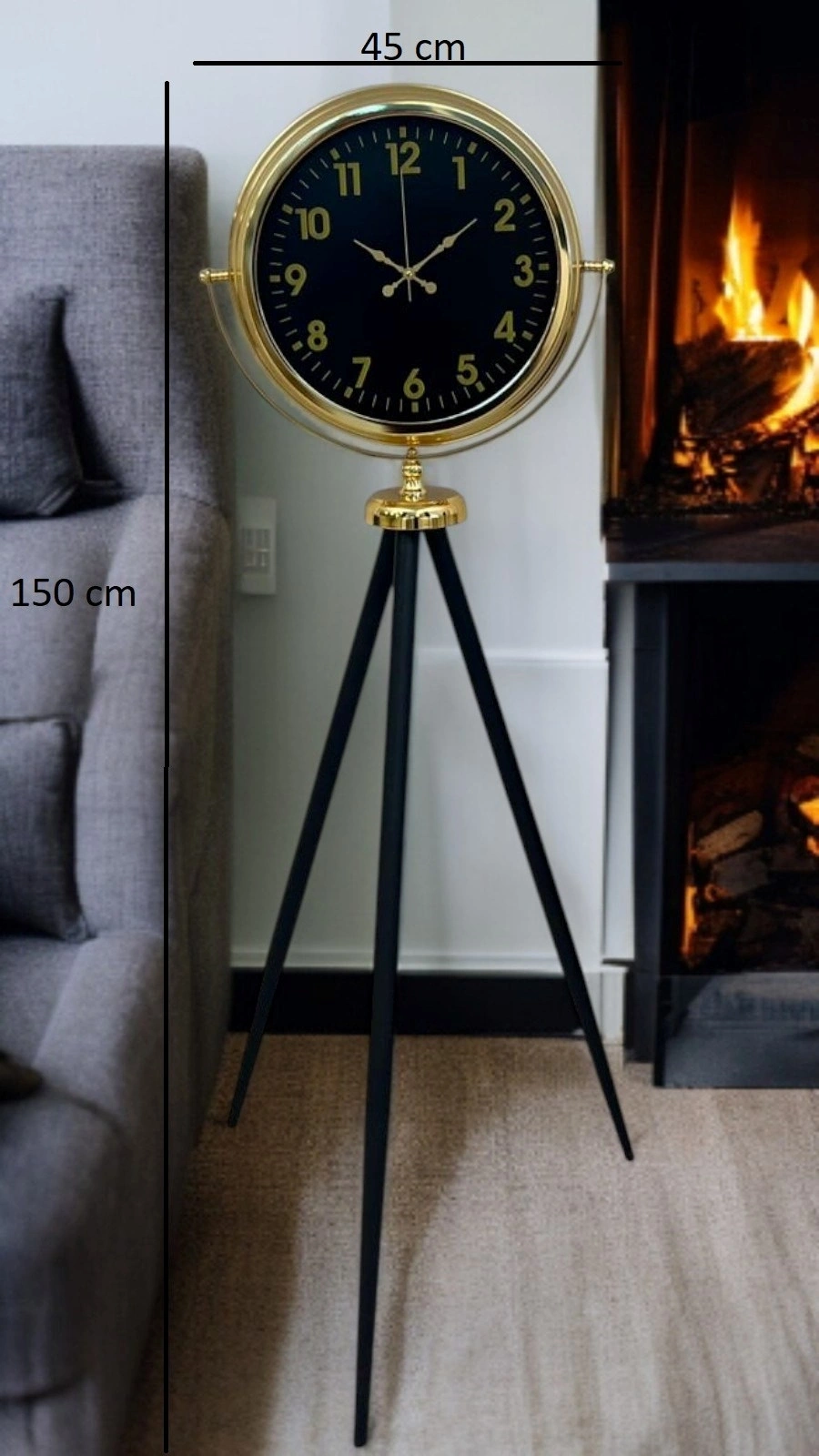 Zamanı sadece göstermekle kalmayan, bulunduğu mekâna karakter ve prestij kazandıran Gold Tripod Ayaklı Dekoratif Saat, modern çizgileri klasik zarafetle buluşturur. 150 cm yüksekliği sayesinde salonlardan ofislere, lobilerden showroom alanlarına kadar geniş mekânlarda güçlü bir duruş sergiler ve dekorasyonun odak noktası hâline gelir.