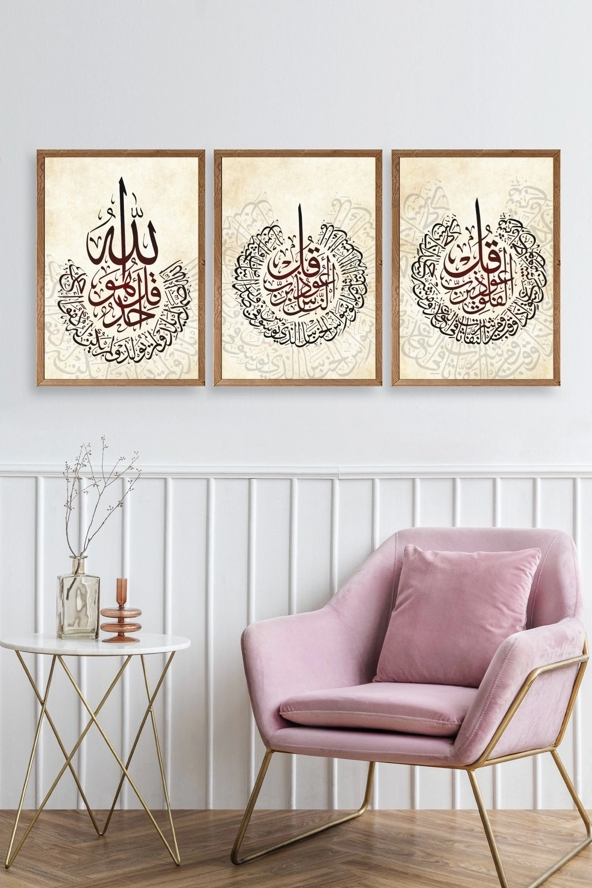 Hat Sanatı Üçlü Ahşap Çerçeveli Tablo 17 x 23