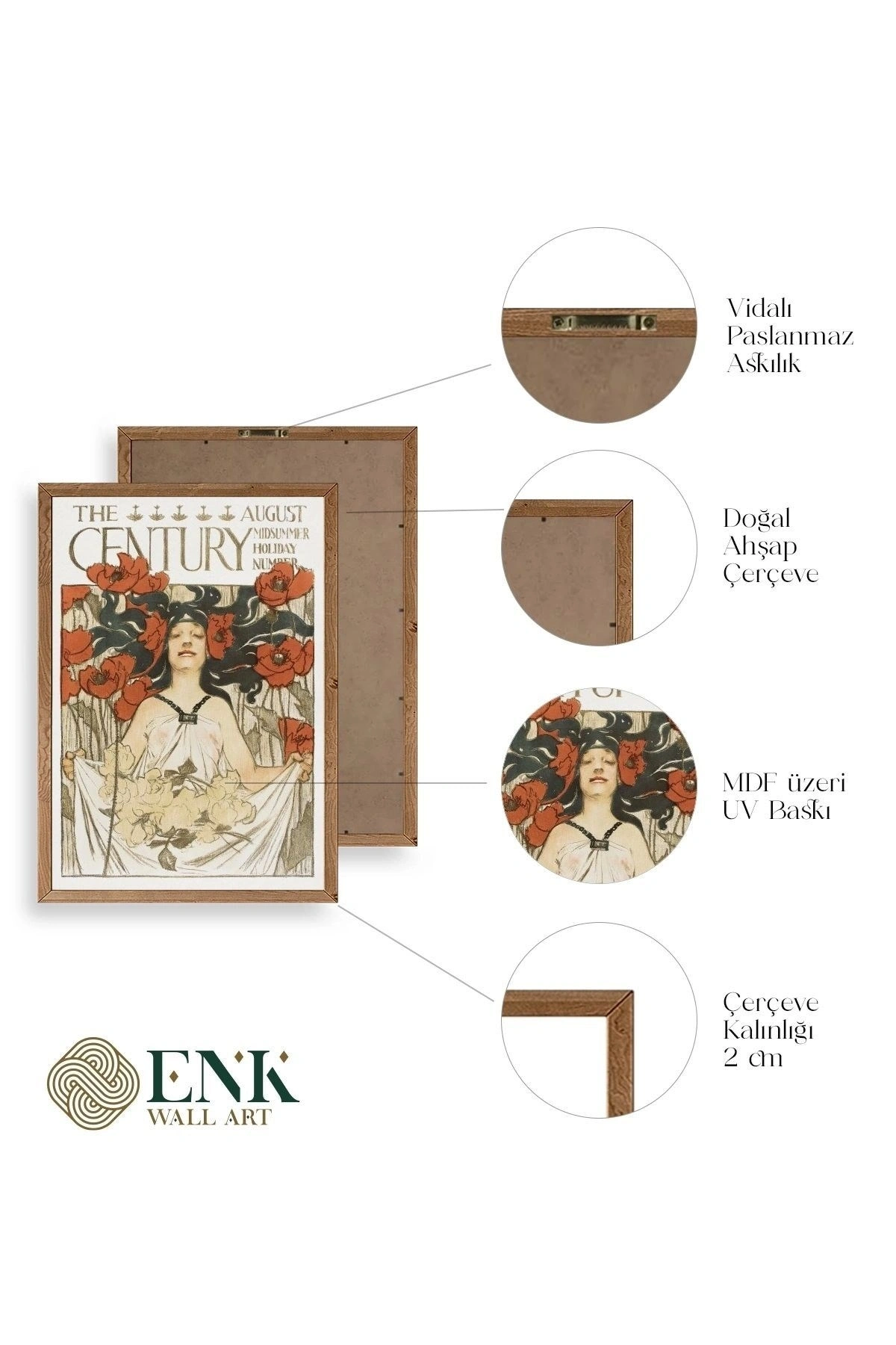 Tablolarımız gerçek ahşap çerçevelidir, çerçeve görünümlü değildir. ; ENK Wall Art Olarak Ahşap Çerçeveli Tablolar Üretiyoruz. ; Tablolarımız tek parça, 3 Parça, 5 Parça ve daha çok kategoride tasarımcılarımız tarafından ev ve ofisleriniz duvarları süslemek için tasarlanmaktadır. ; Ahşap Çerçeveli Duvar Tabloları ile yaşam alanlarınıza yepyeni bir görünüm kazandırın. ; Yıllarca dayanacağından emin olduğumuz sağlam çerçevelere sahip yüksek kaliteli ahşaptan üretilmiştir. ; İster bir köşeyi süslemek isteyin, ister evinizi yenilemek , bu ahşap tablolar herhangi bir yaşam alanına stil ve işlev getirecektir. ; Duvara kolay bir şekilde monte edilir. ; Uzun ömürlü kullanım için sağlam ahşap çerçeveden yapılmış, dayanıklı ve güçlü. ; Duvara monte edilebilir tasarımı, yaşam alanlarında veya yatak odalarında duvara kolayca asılmasını sağlar. ; Pürüzsüz üst yüzeyi temiz kalmayı kolaylaştırır. ; Herhangi bir stile uyacak şekilde çeşitli renklerde gelir. ; Kolay yeniden düzenleme için hafif ve portatif. ; Küçük oturma odaları veya dar alanlar için mükemmel boyut. ; Eve taşınma hediyesi olarak idealdir. ; Herhangi bir evin dekorunu süslemek için harika bir yol. ; Herhangi bir modern veya çağdaş iç tasarıma mükemmel bir katkı. ; Tablo içi 3 mm mdf (ahşap) malzeme üzeri uv baskıdır. ; Renkler canlı ve solma yapmaz. ; Kırılma, bükülme ve çizilmeye karşı dayanıklıdır.;