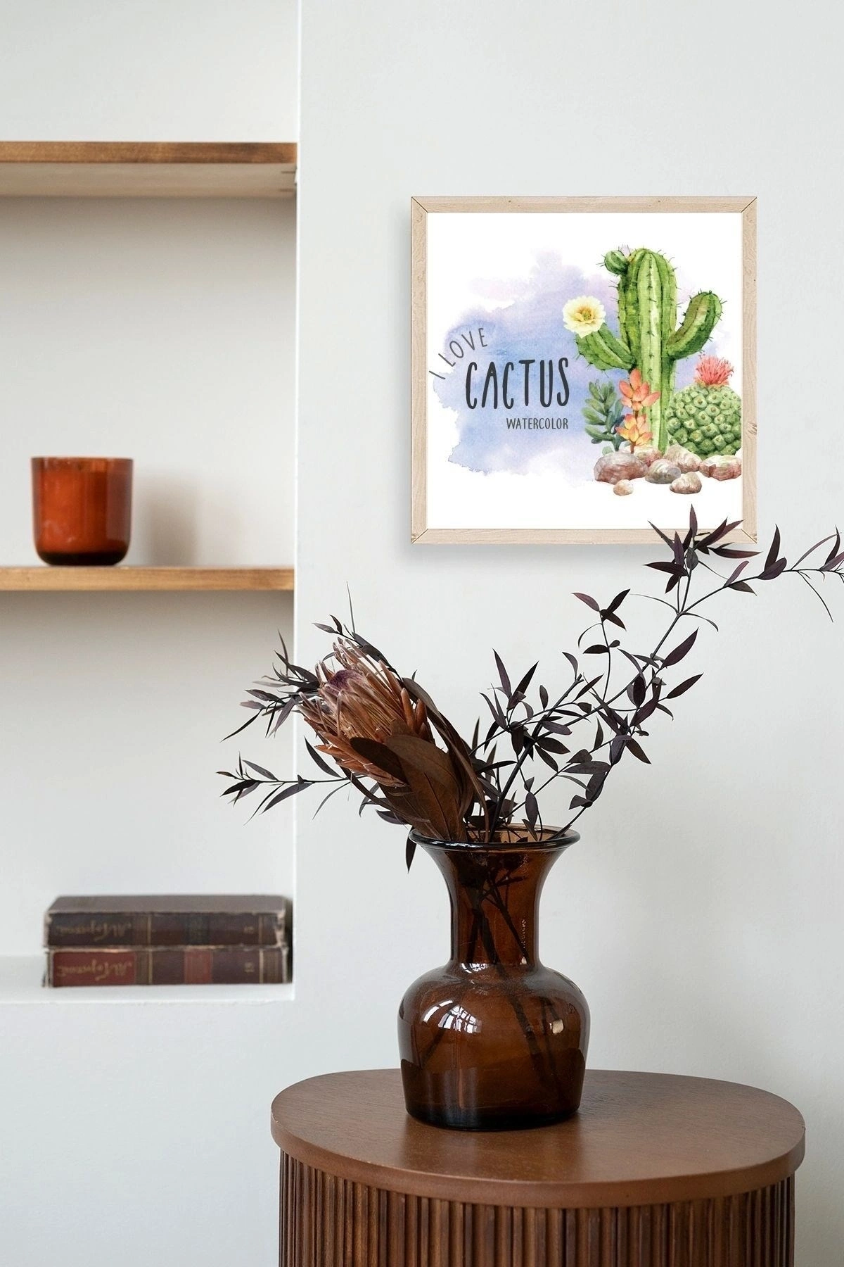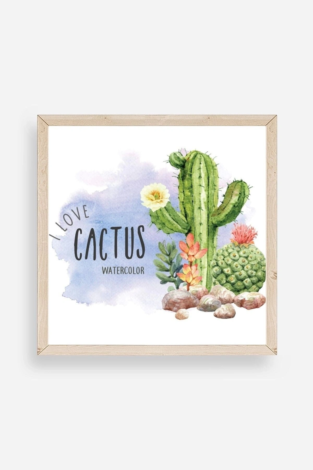 Kaktüs Ahşap Çerçeveli Tablo 23 x 23