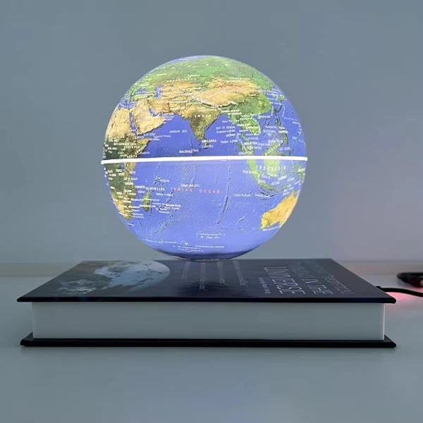 KİTAP ŞEKLİNDE MANYETİK DÖNEN IŞIKLI DÜNYA KÜRE Ürün ÖzellikleriModern tasarımıyla dikkat çeken Kitap Şeklinde Manyetik Dönen Işıklı Dünya Küre, hem dekoratif hem de öğretici bir üründür. 21x15 cm boyutundaki bu özel küre, manyetik alan teknolojisiyle havada süzülür ve 360 derece döner, böylece etkileyici bir görsel deneyim sunar.Alt kısmındaki kitap şeklindeki manyetik taban, ürüne şık ve entelektüel bir görünüm kazandırırken, açılıp kapanabilir LED aydınlatma sistemi sayesinde özellikle karanlık ortamlarda büyüleyici bir atmosfer yaratır.İçinde yer alan detaylı dünya haritası, hem coğrafya tutkunları hem de öğrenciler için ideal bir öğrenme aracıdır. Ofis, ev veya çalışma odalarında masaüstü dekorasyonu olarak da mükemmel bir tercih sunar.Paket İçeriği1 adet Kitap Şeklinde Manyetik Dönen Işıklı Dünya Küre