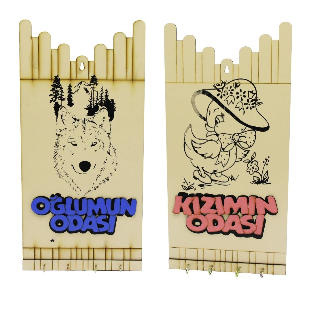 KIZ - ERKEK ÇOCUK FİGÜRLÜ (OĞLUMUN-KIZIMIN ODASI YAZILI AHŞAP ANAHTARLIK