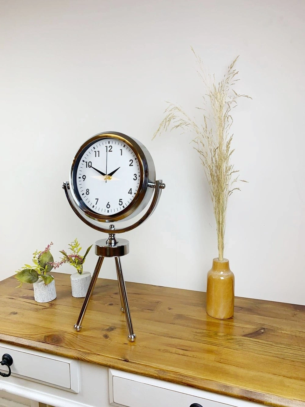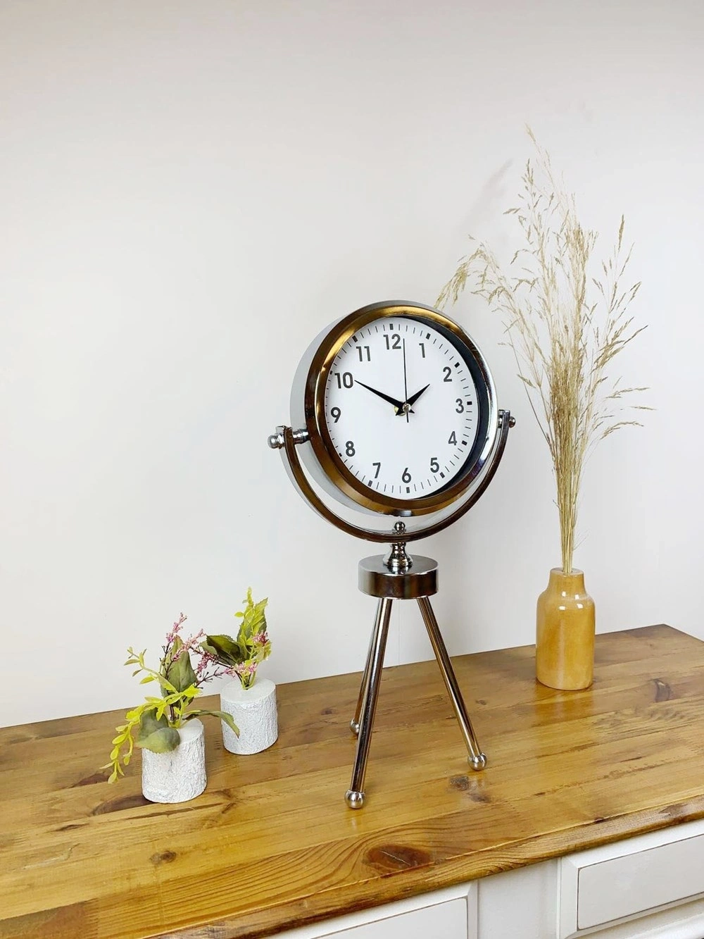 Krom Metal Mini Tripod Lüks Masa Saati 45×26 cm