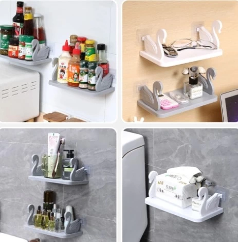 • Kuğu tasarım pratik kozmetik kendinden yapışkanlı duvara monte edilen organizatör depolama rafı