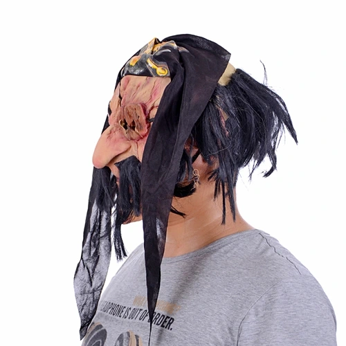 Lateks Dişli Korku Maskesi Saçlı Yarım Surat (5365)