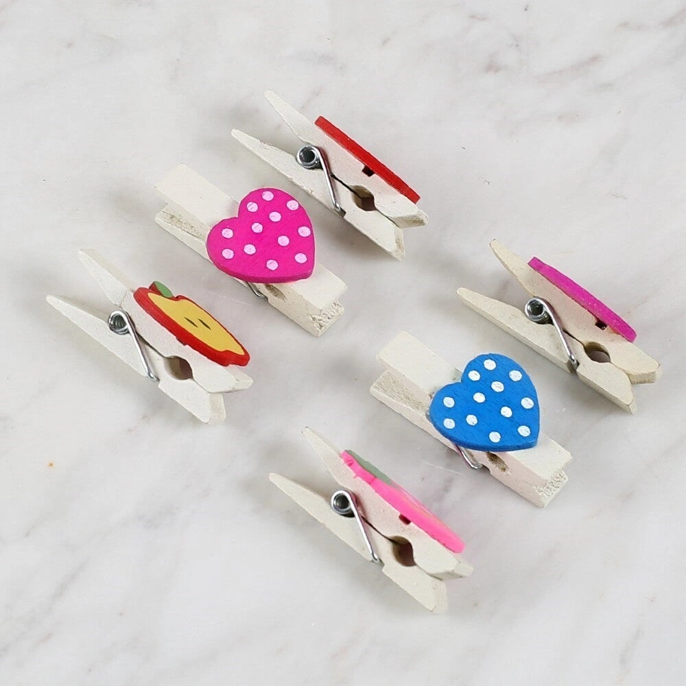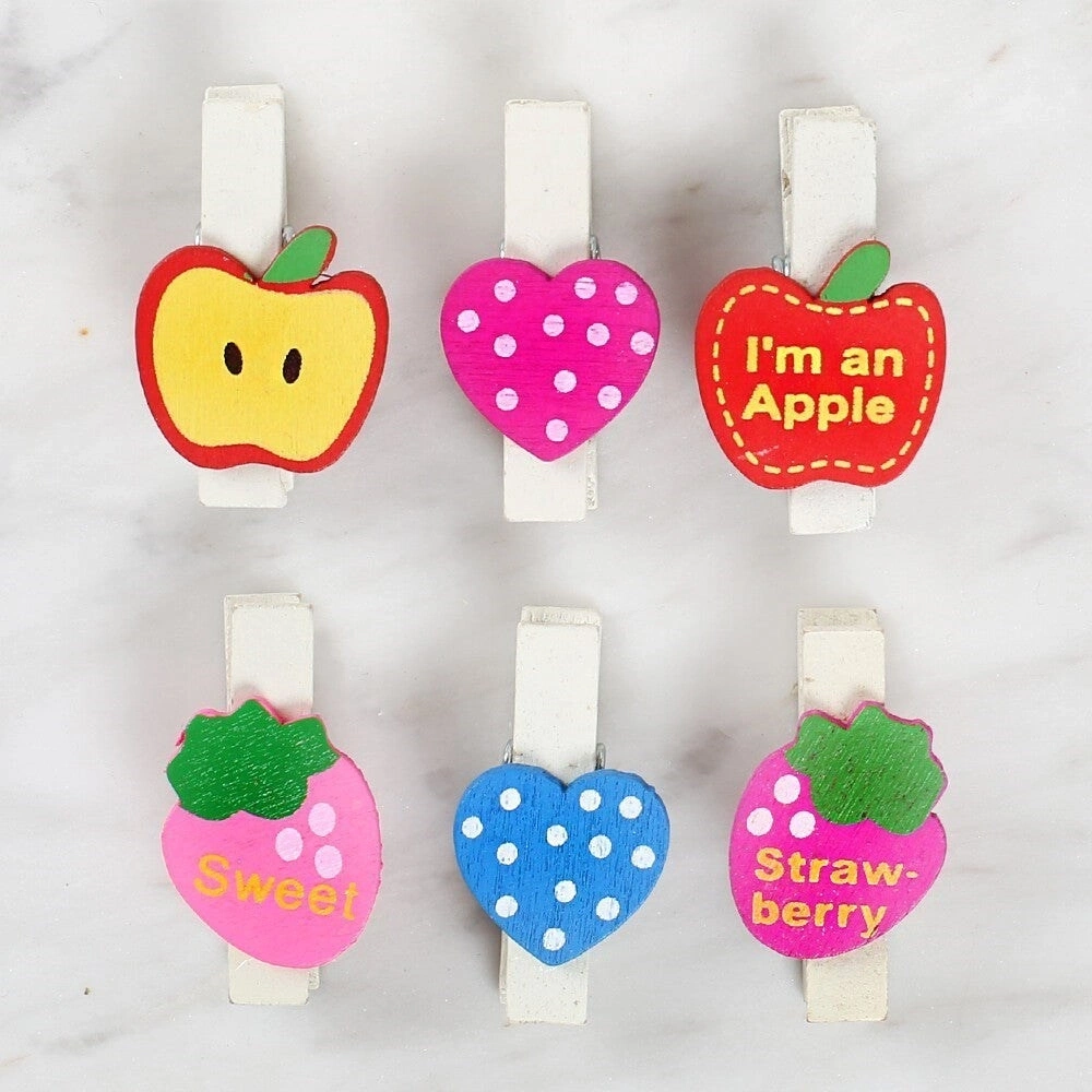 Loren Dekoratif Kalp Ve Meyve Desenli Mandal 6'lı