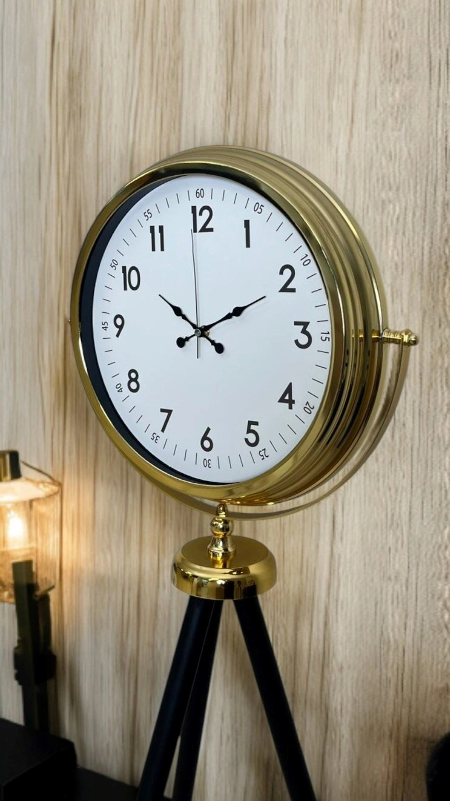 Zarif detayları ve güçlü duruşuyla öne çıkan gold tripod ayaklı dekoratif saat, bulunduğu mekâna sofistike ve prestijli bir hava katar. Klasik saat formu ile modern tripod ayak tasarımının birleşimi, bu modeli sıradan ayaklı saatlerden ayırarak dekorasyonun odak noktası haline getirir.