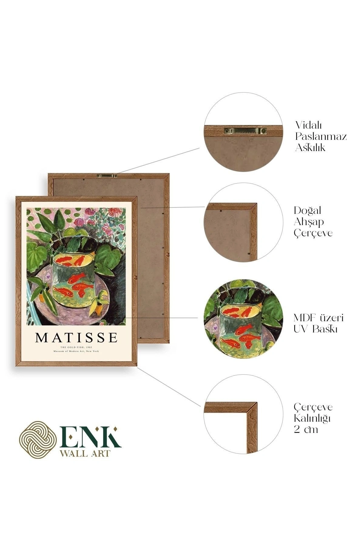 Tablolarımız gerçek ahşap çerçevelidir, çerçeve görünümlü değildir. ; ENK Wall Art Olarak Ahşap Çerçeveli Tablolar Üretiyoruz. ; Tablolarımız tek parça, 3 Parça, 5 Parça ve daha çok kategoride tasarımcılarımız tarafından ev ve ofisleriniz duvarları süslemek için tasarlanmaktadır. ; Ahşap Çerçeveli Duvar Tabloları ile yaşam alanlarınıza yepyeni bir görünüm kazandırın. ; Yıllarca dayanacağından emin olduğumuz sağlam çerçevelere sahip yüksek kaliteli ahşaptan üretilmiştir. ; İster bir köşeyi süslemek isteyin, ister evinizi yenilemek , bu ahşap tablolar herhangi bir yaşam alanına stil ve işlev getirecektir. ; Duvara kolay bir şekilde monte edilir. ; Uzun ömürlü kullanım için sağlam ahşap çerçeveden yapılmış, dayanıklı ve güçlü. ; Duvara monte edilebilir tasarımı, yaşam alanlarında veya yatak odalarında duvara kolayca asılmasını sağlar. ; Pürüzsüz üst yüzeyi temiz kalmayı kolaylaştırır. ; Herhangi bir stile uyacak şekilde çeşitli renklerde gelir. ; Kolay yeniden düzenleme için hafif ve portatif. ; Küçük oturma odaları veya dar alanlar için mükemmel boyut. ; Eve taşınma hediyesi olarak idealdir. ; Herhangi bir evin dekorunu süslemek için harika bir yol. ; Herhangi bir modern veya çağdaş iç tasarıma mükemmel bir katkı. ; Tablo içi 3 mm mdf (ahşap) malzeme üzeri uv baskıdır. ; Renkler canlı ve solma yapmaz. ; Kırılma, bükülme ve çizilmeye karşı dayanıklıdır.;